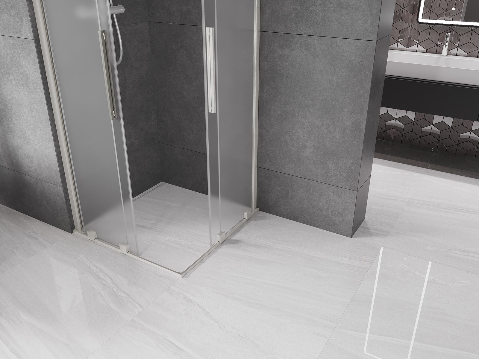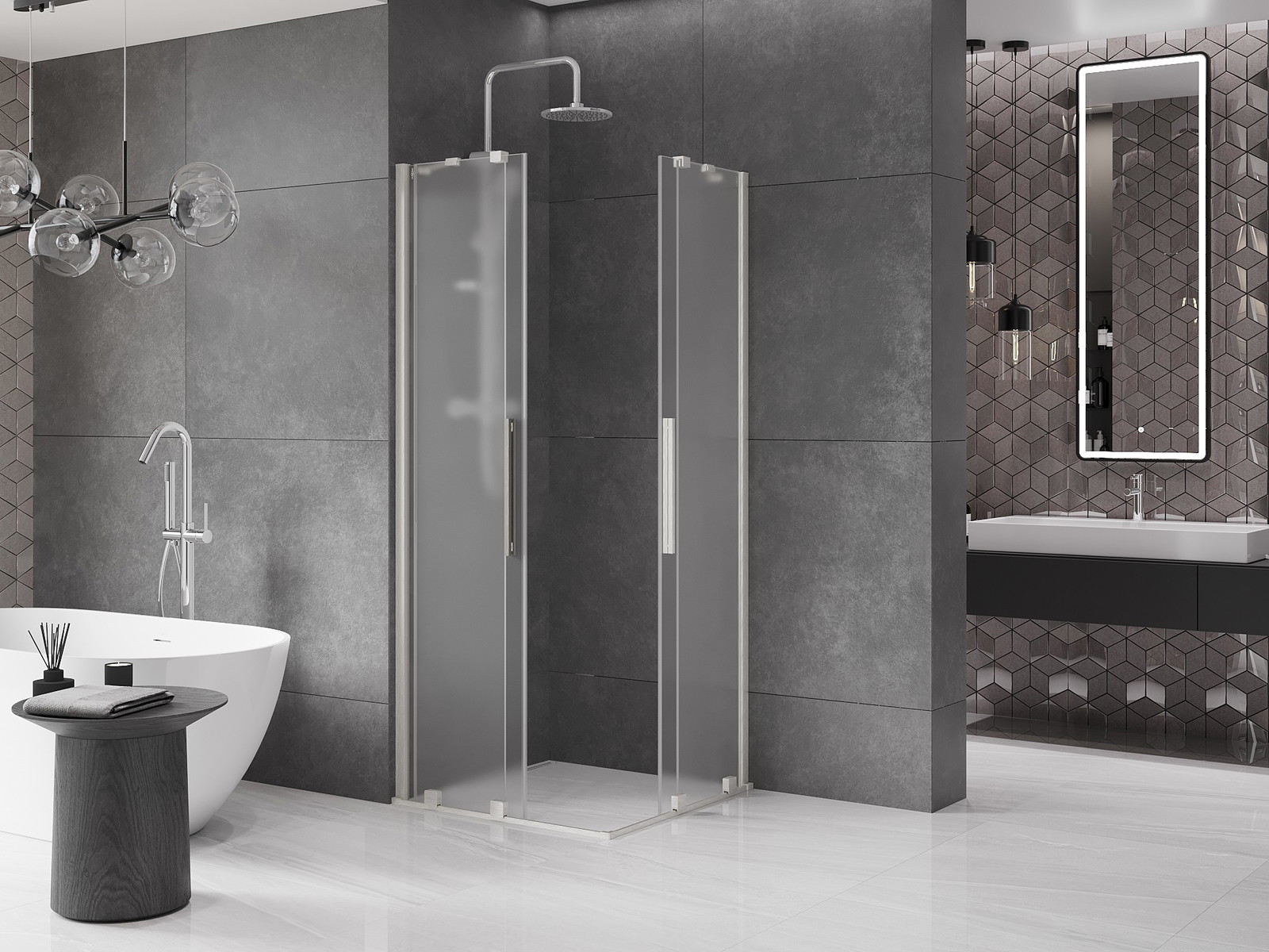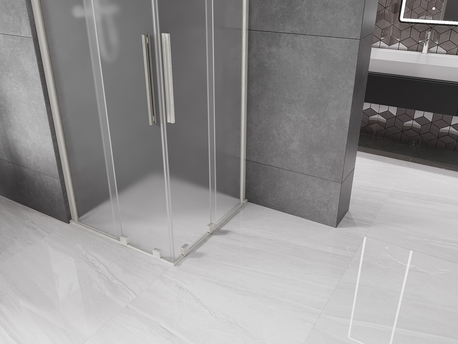 Mexen Velar Dviguba stumdoma dušo kabina 80 x 80 cm, matinė, šepečiu padengtas nikeliu - 871-080-080-32-97