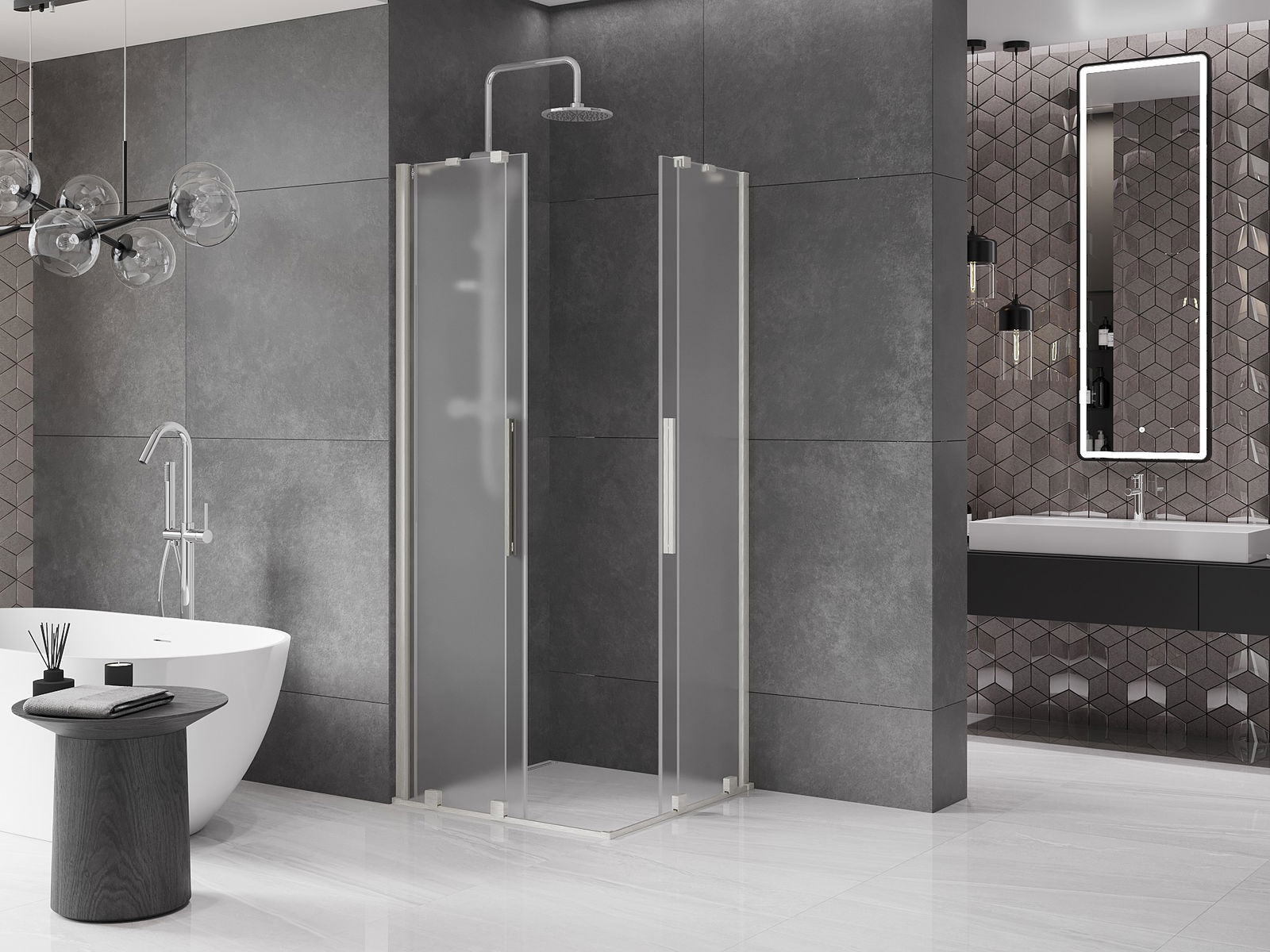 Produktą, atsižvelgiant į poreikius, galima sumontuoti tiek ant dušo padėklo, tiek tiesiogiai ant grindų. Universalus montavimo būdas leidžia pritaikyti produktą įvairių tipų vonios kambariams ir erdvės konfigūracijoms.