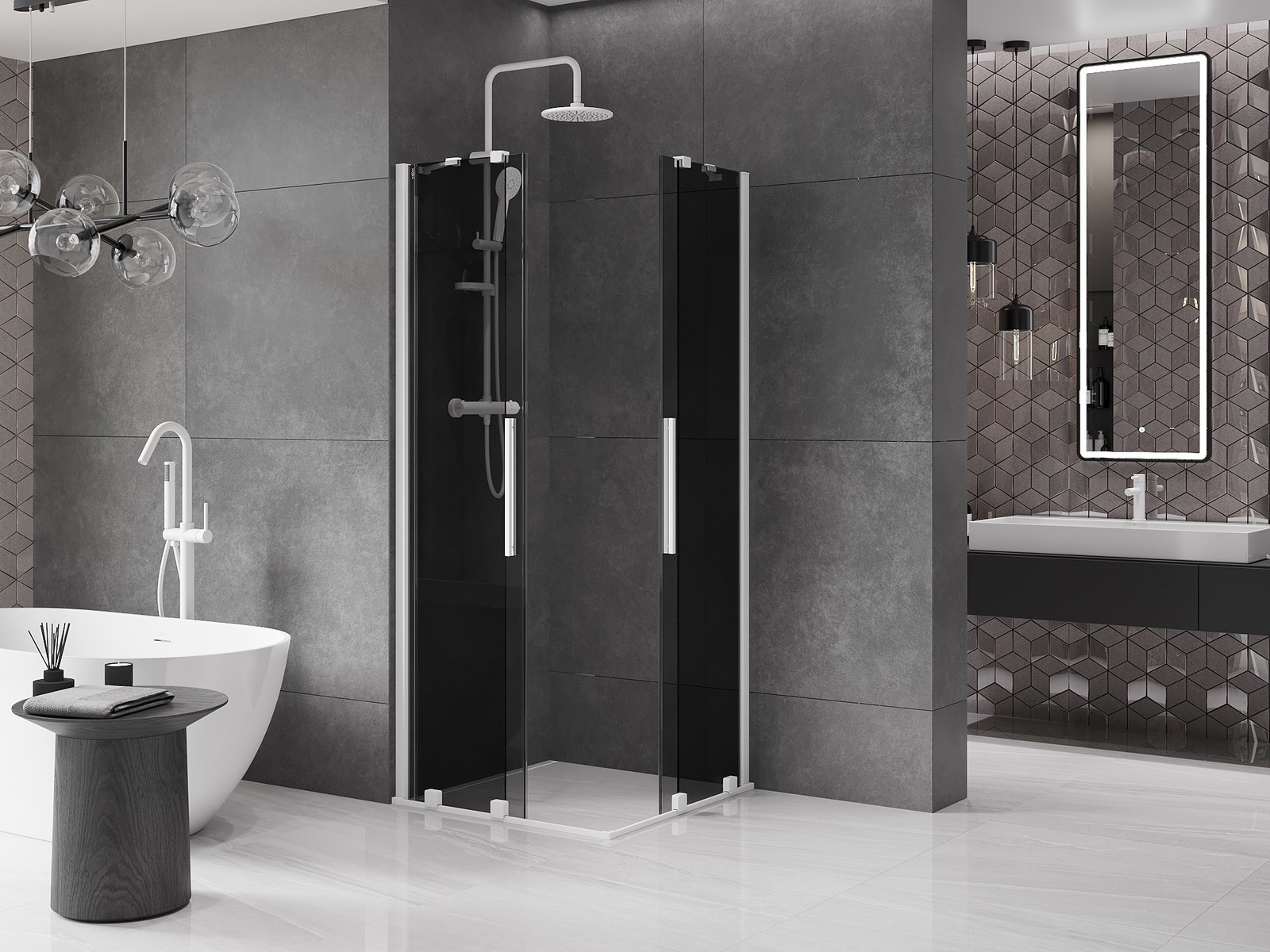 Mexen Velar Dvivietis slankiojančios dušo kabinos 80 x 80 cm, grafitas, balta - 871-080-080-42-20