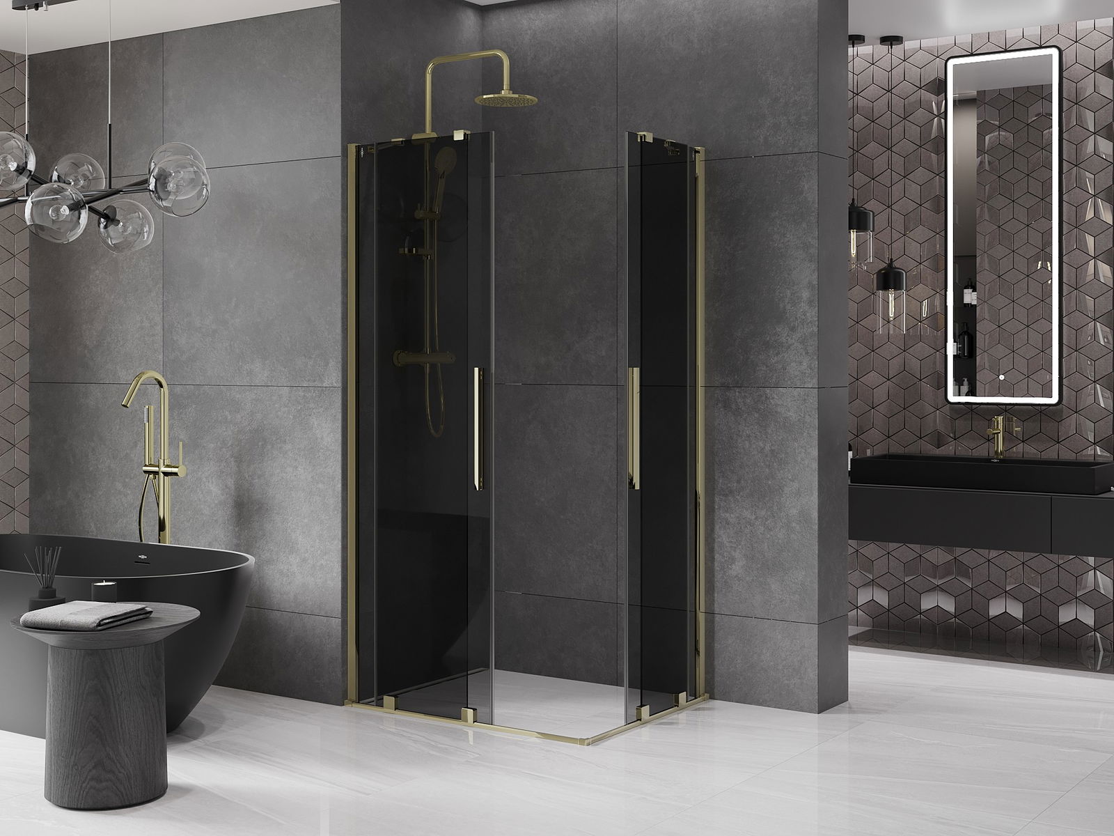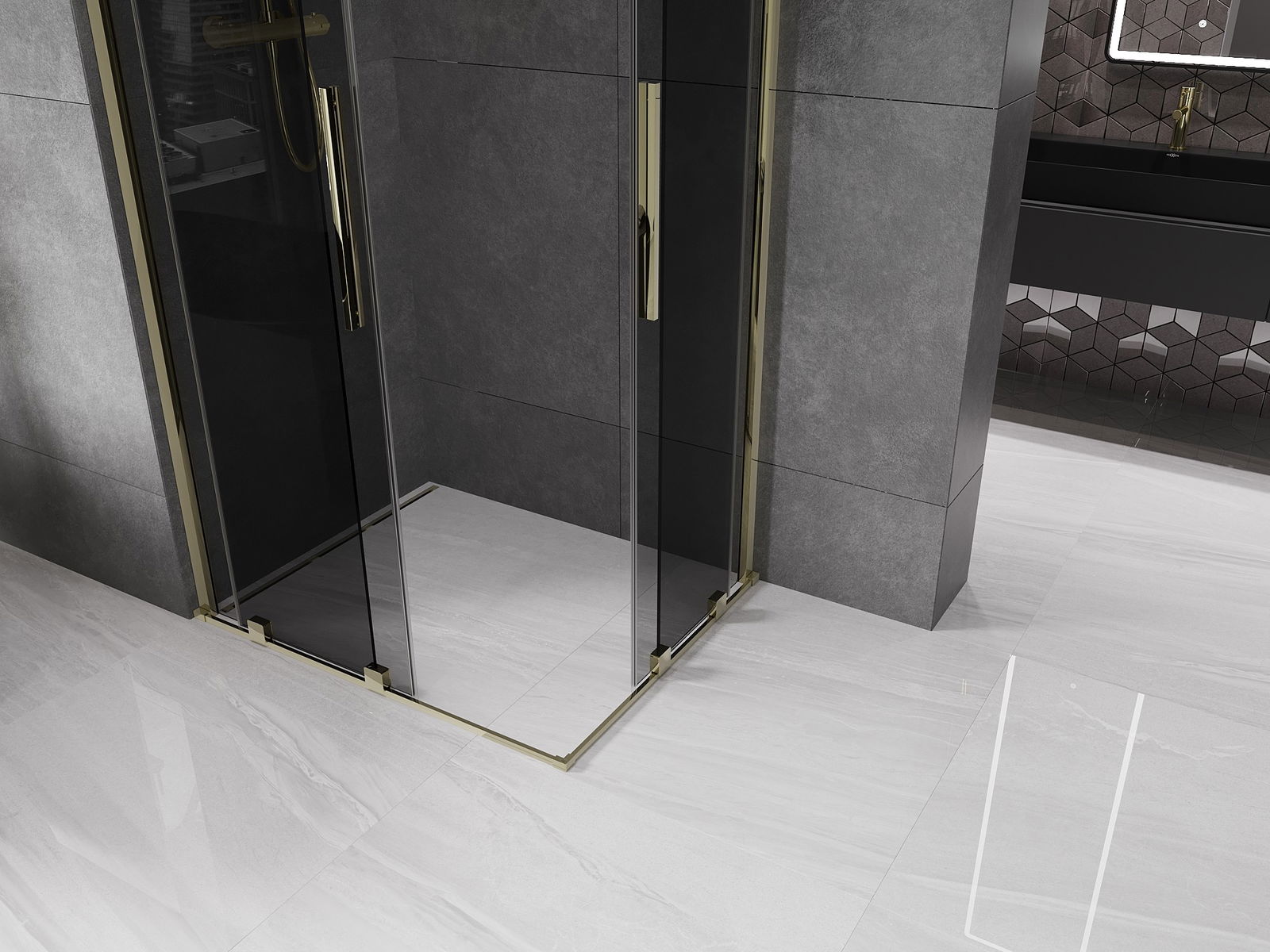 Mexen Velar Duo stumdomos dušo kabina 100 x 90 cm, grafitas, auksinė - 871-100-090-42-50