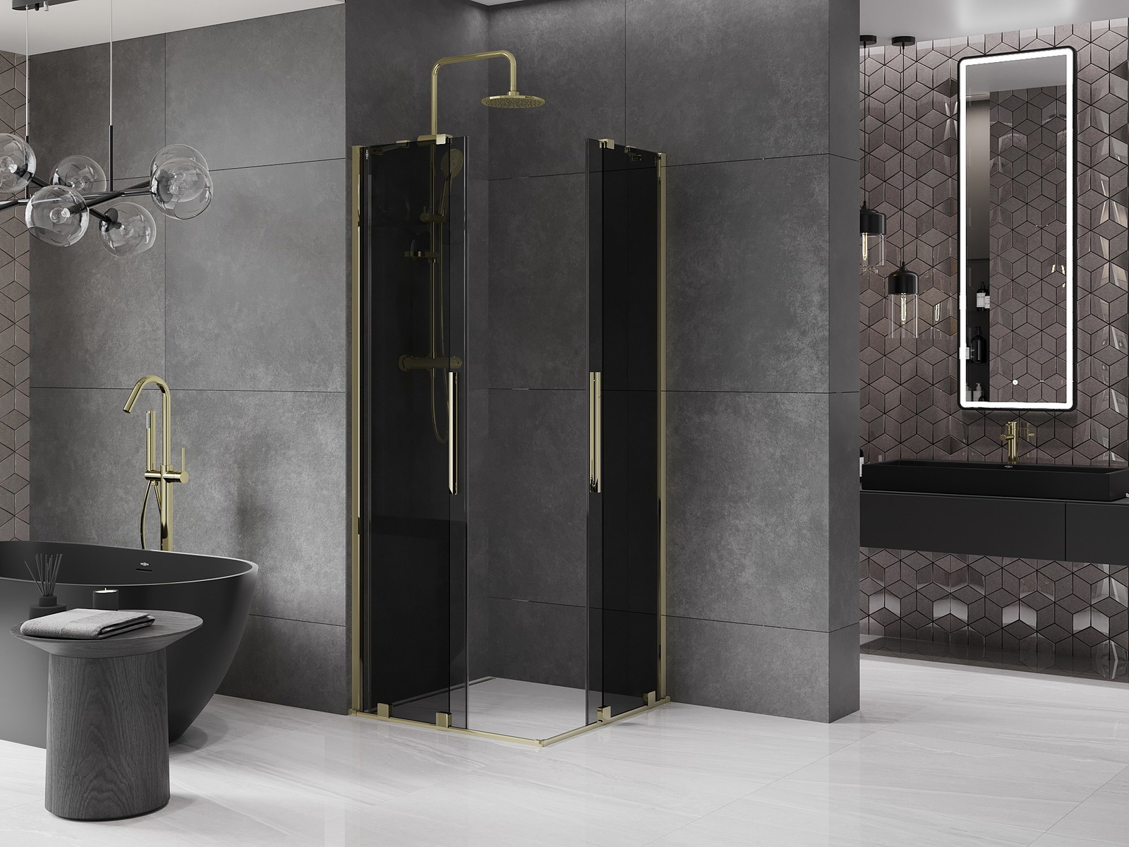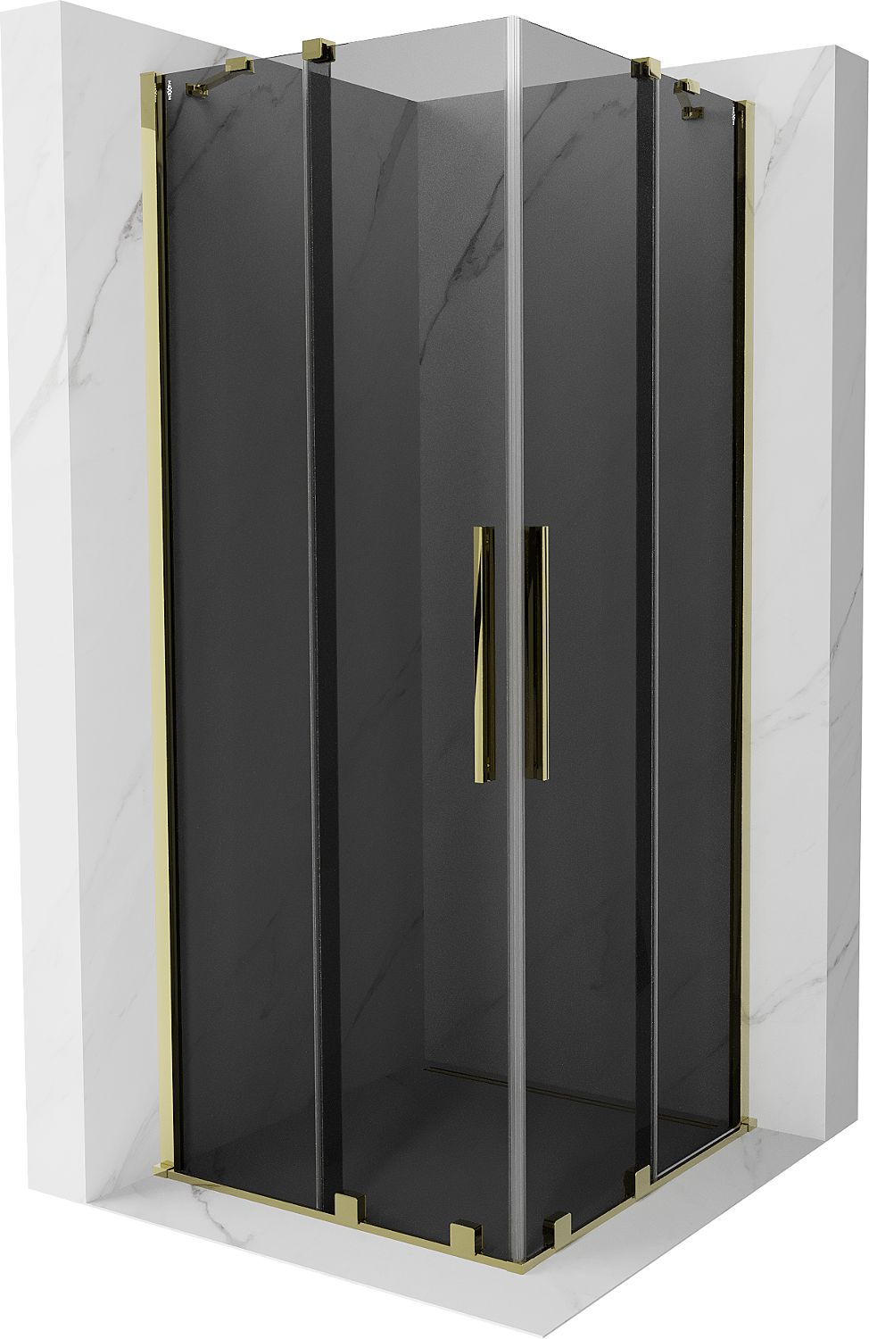 Mexen Velar Dviguba slankiojama dušo kabina 100 x 100 cm, grafito, auksinė - 871-100-100-42-50
