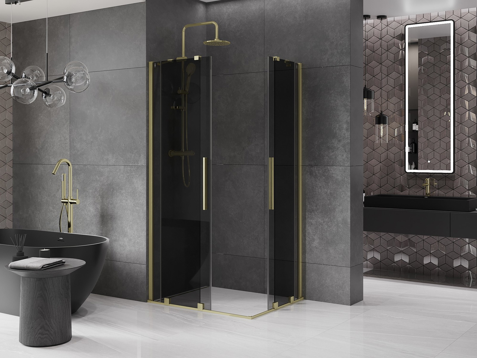 Mexen Velar Duo slankiojamas dušo kabina 90 x 80 cm, grafitas, auksinis šlifuotas - 871-090-080-42-55