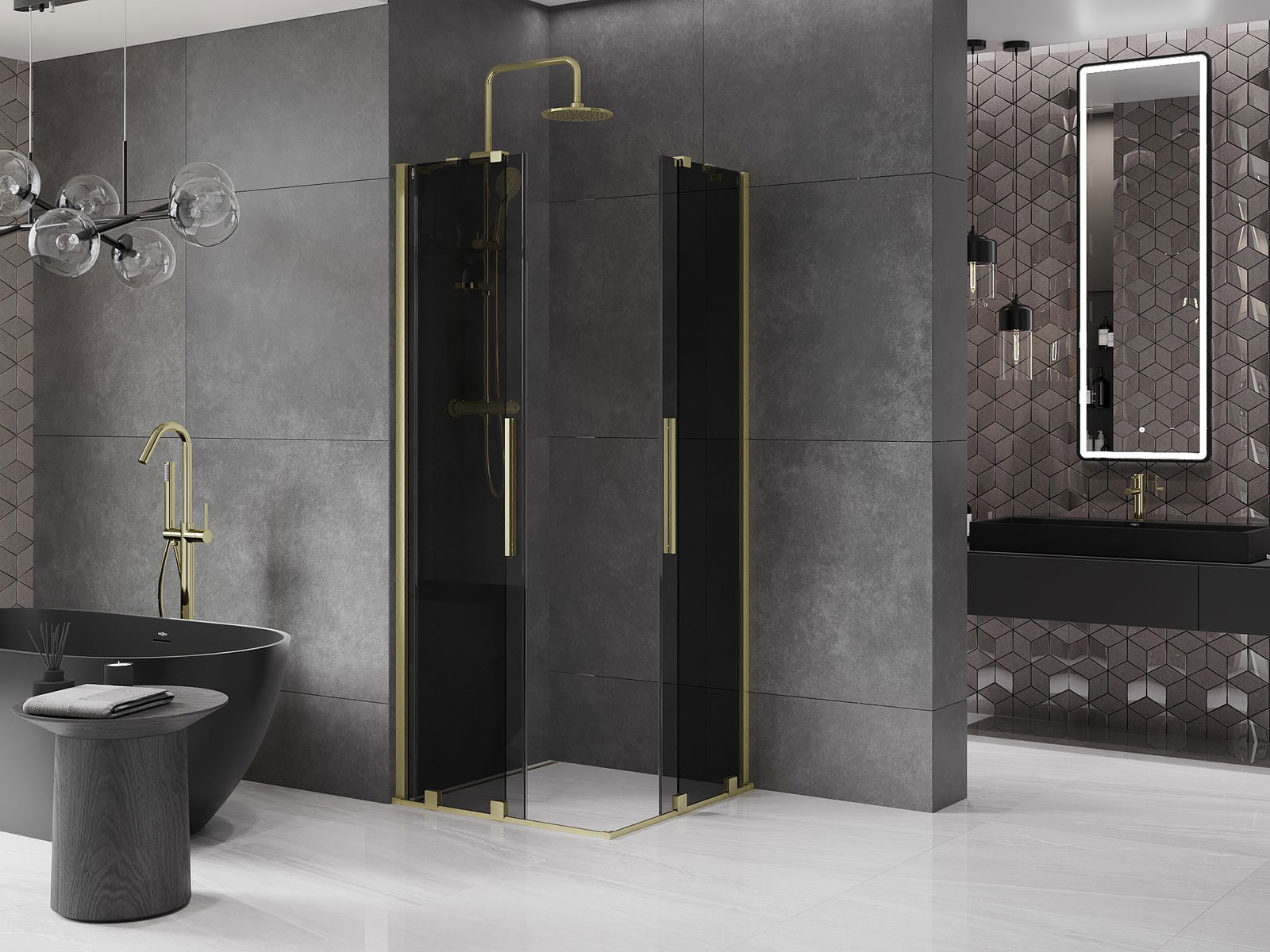 Mexen Velar Duo stumdomas dušo kabina 100 x 100 cm, grafitas, šlifuotas auksas - 871-100-100-42-55