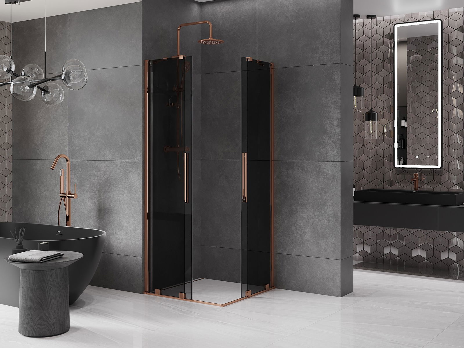 Mexen Velar Duo stumdomos dušo kabina 90 x 90 cm, grafito, rožinio aukso - 871-090-090-42-60