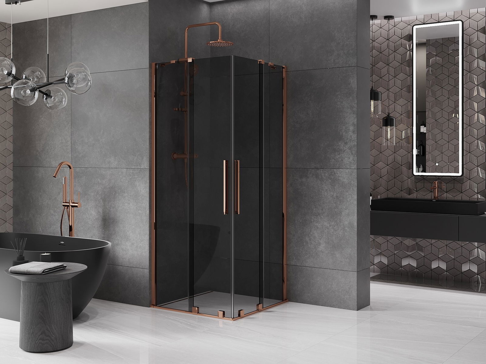 Mexen Velar Duo stumdoma dušo kabina 100 x 100 cm, grafitas, rožinis auksas - 871-100-100-42-60