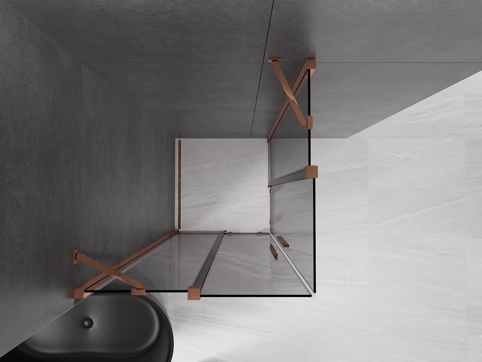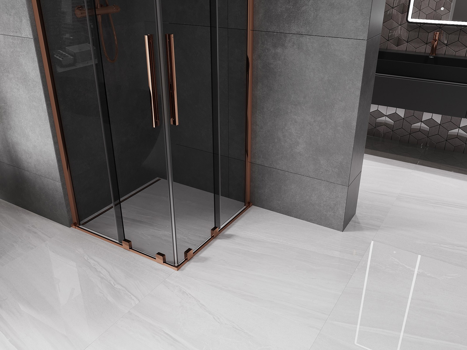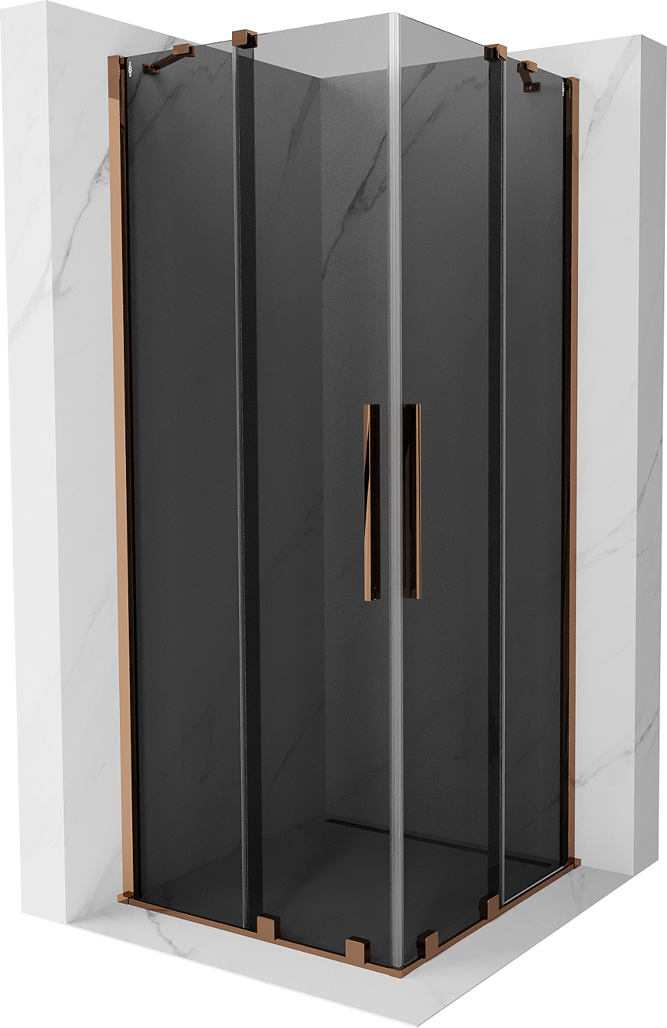 Mexen Velar Dviguba slankioji dušo kabina 100 x 100 cm, grafitas, rožinis auksas - 871-100-100-42-60