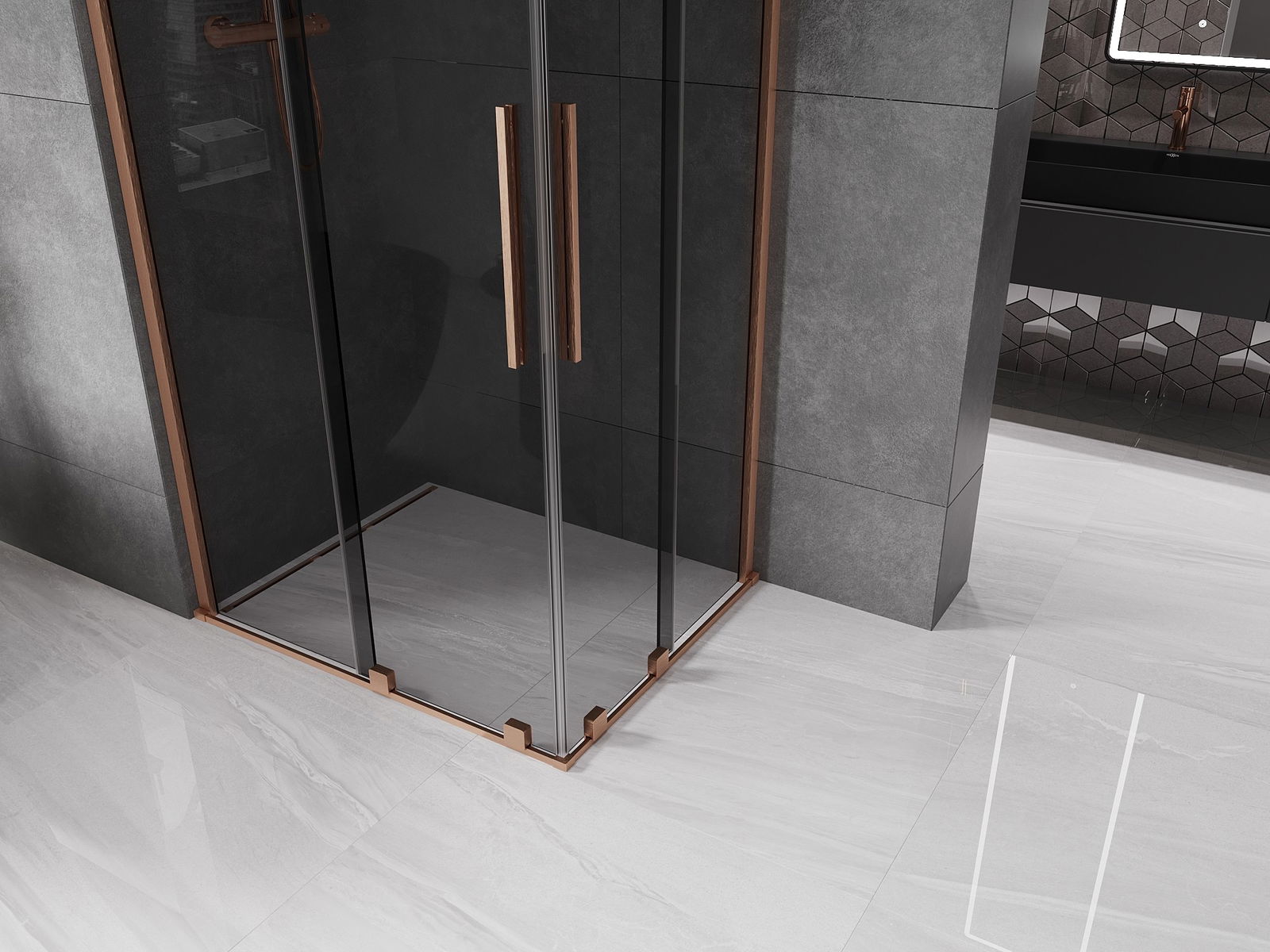 Mexen Velar Duo stumdomas dušo kabina 90 x 80 cm, grafitas, šlifuotas varis - 871-090-080-42-65