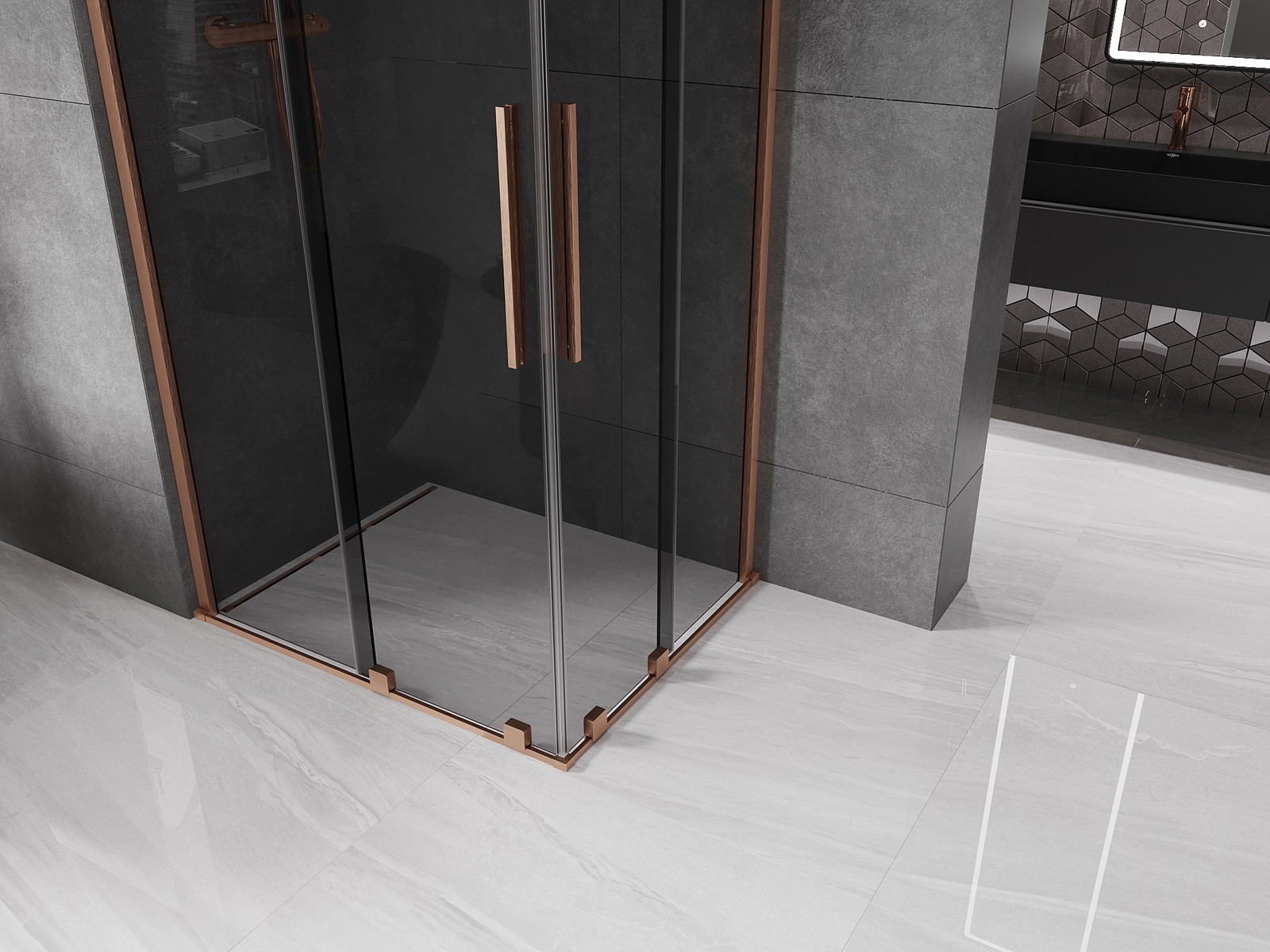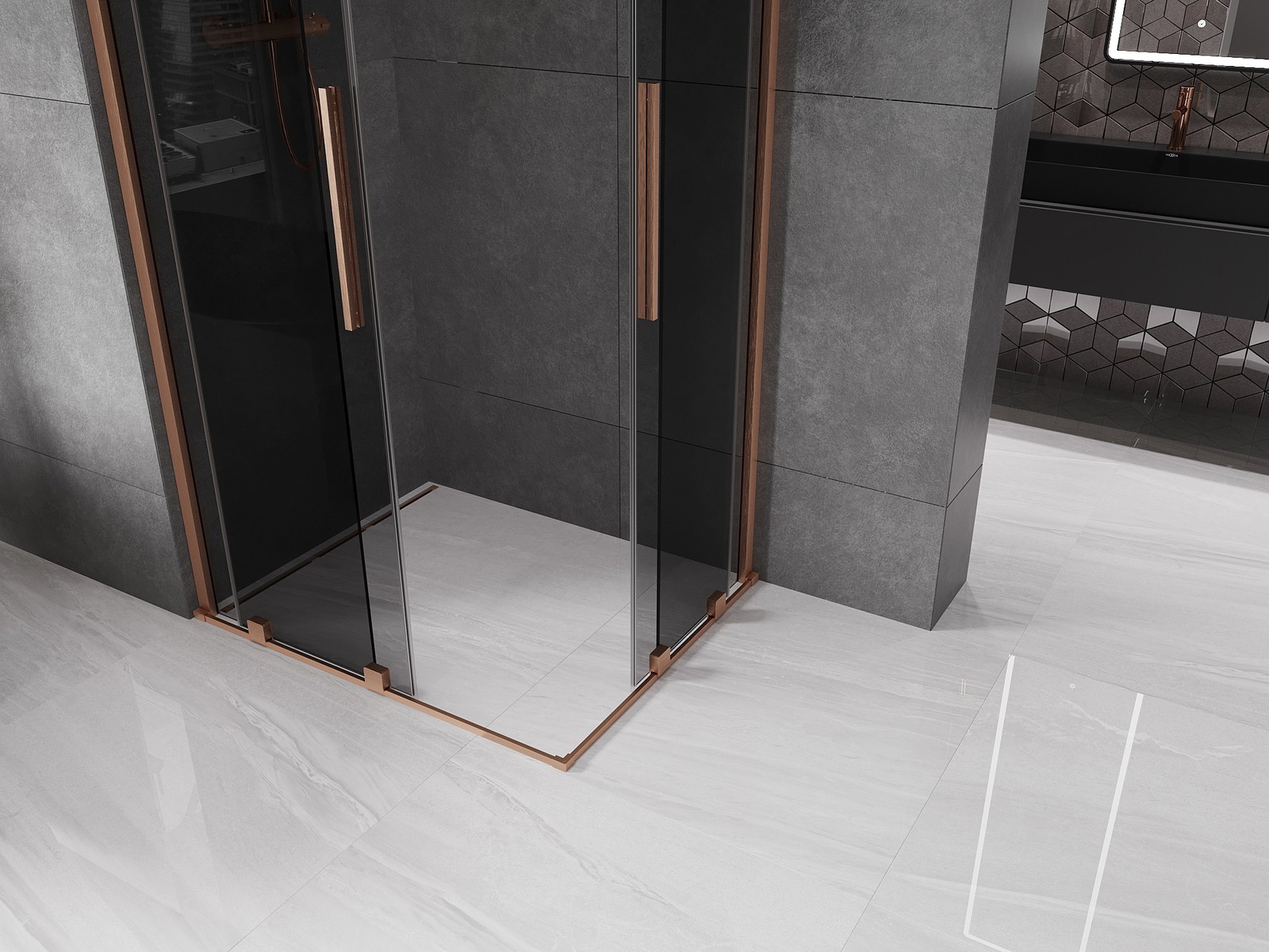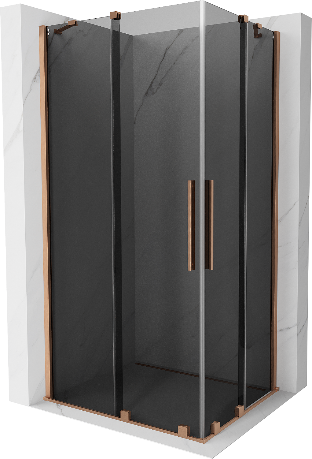 Mexen Velar Duo stumdomoji dušo kabina 90 x 80 cm, grafito, šlifuota vario - 871-090-080-42-65