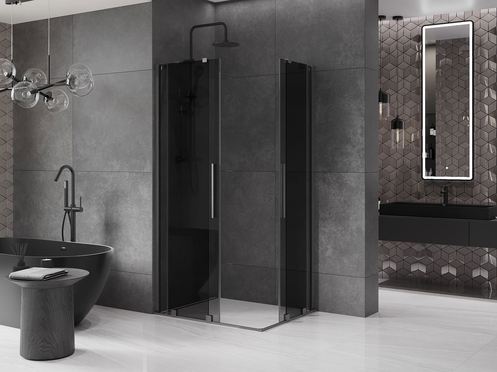 Mexen Velar Duo stumdomas dušo kabina 90 x 80 cm, grafitas, šlifuotas ginklo pilkumas - 871-090-080-42-66