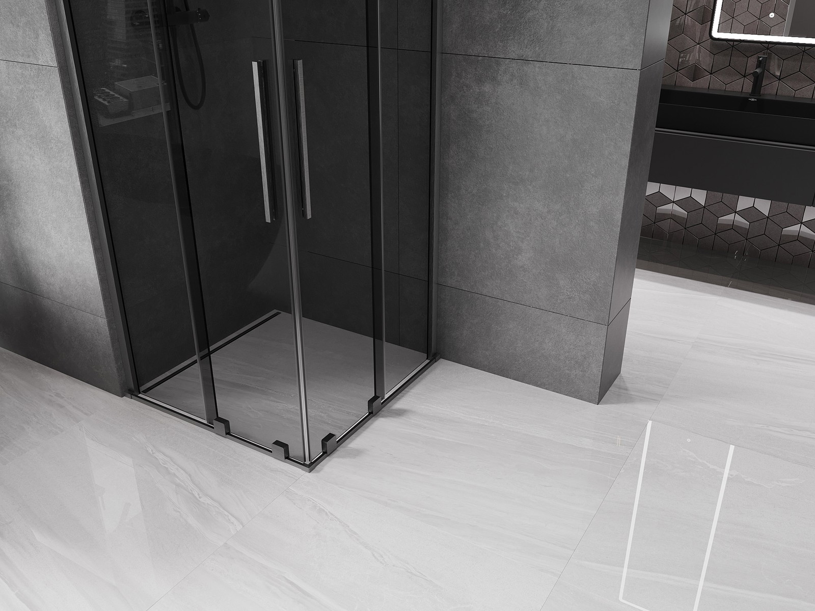 Mexen Velar Duo stumdoma dušo kabina 100 x 100 cm, grafitas, gun gray šlifuotas - 871-100-100-42-66