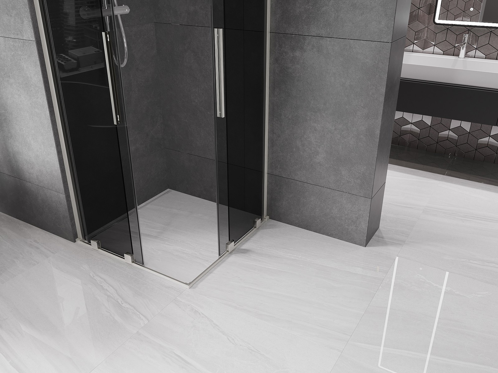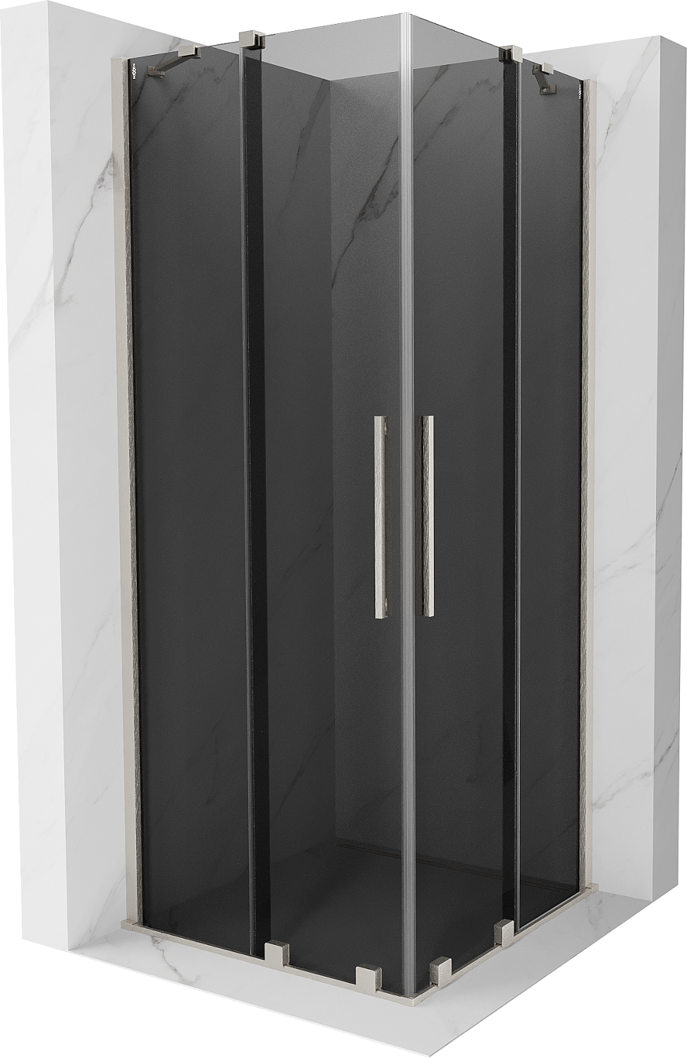 Mexen Velar Dviguba stumdoma dušo kabina 90 x 90 cm, grafitas, šlifuotas nikelis - 871-090-090-42-97