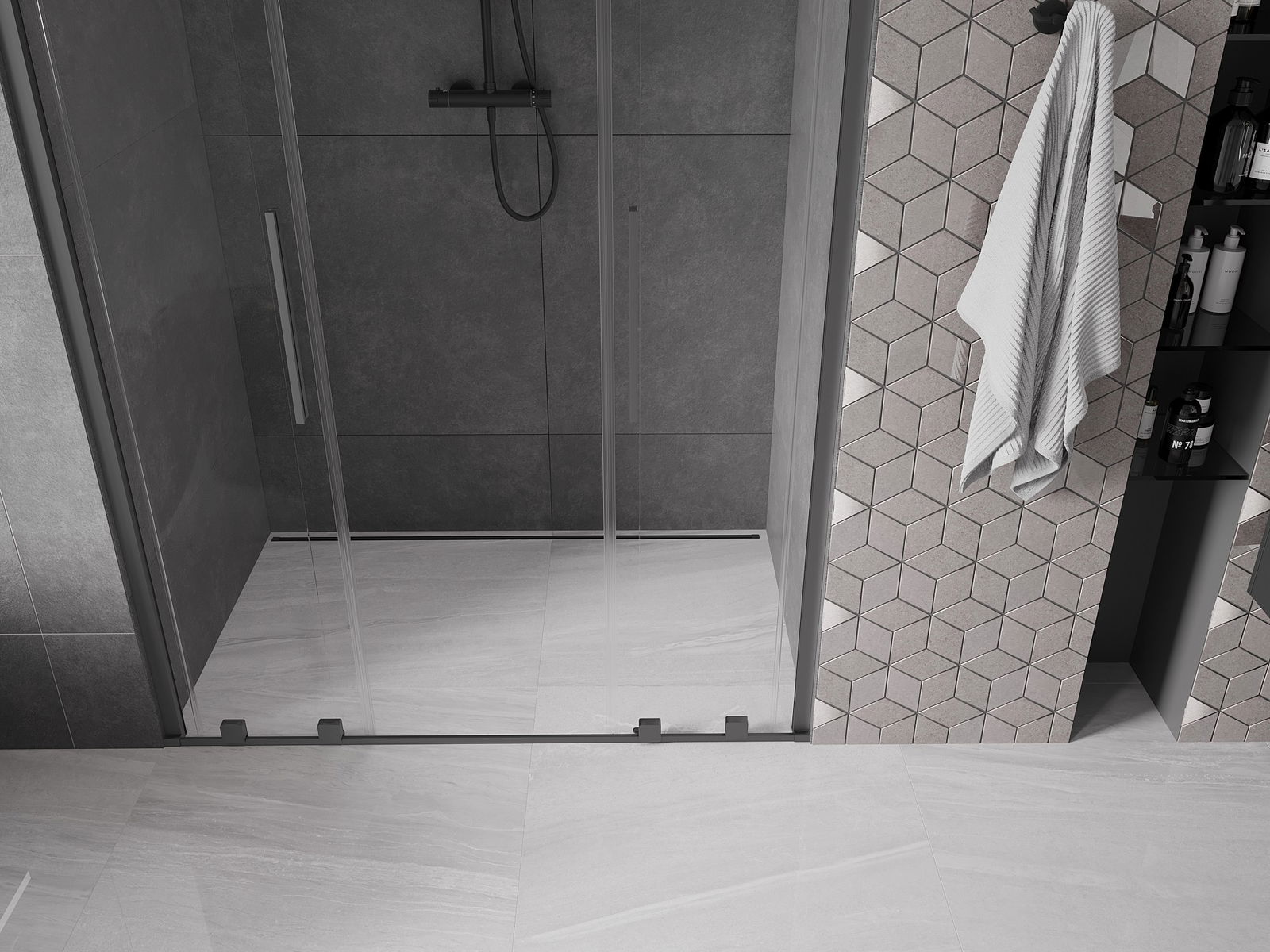 Mexen Velar Duo stumdamosios dušo durys 140 cm, skaidrios, gun metal - 871-140-000-02-95