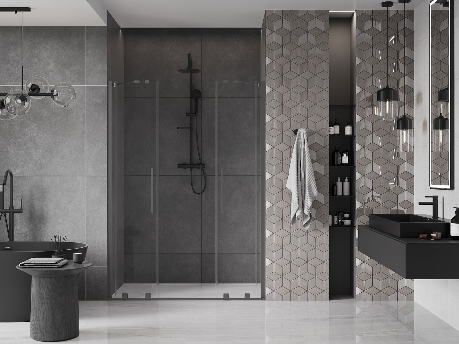 Mexen Velar Duo stumdomos dušo durys 150 cm, skaidrios, grafito metalas - 871-150-000-02-95