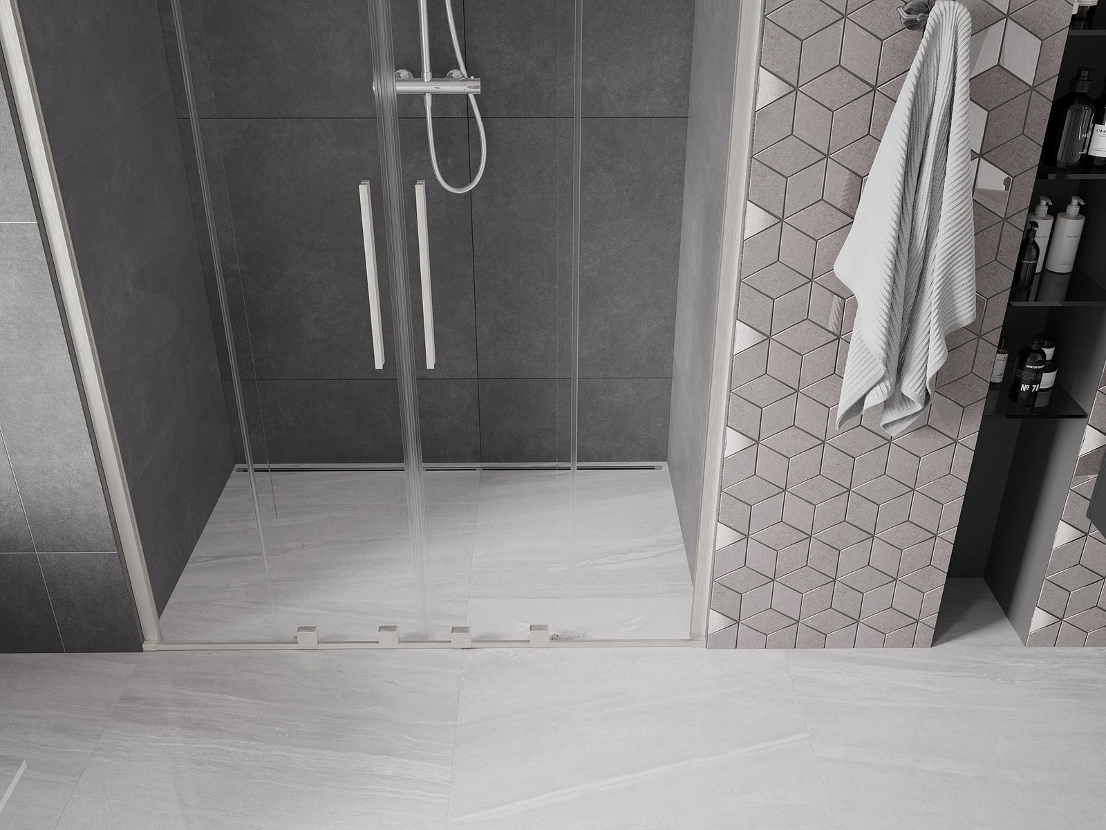 Produktą, atsižvelgiant į poreikius, galima sumontuoti tiek ant dušo padėklo, tiek tiesiogiai ant grindų. Universalus montavimo būdas leidžia pritaikyti produktą įvairių tipų vonios kambariams ir erdvės konfigūracijoms.