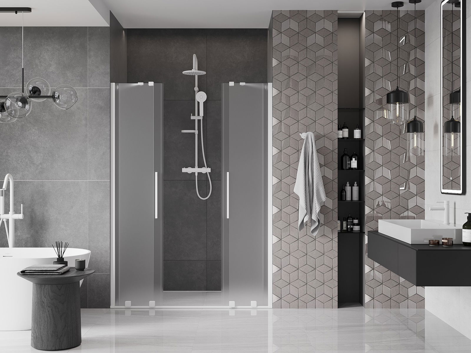 Mexen Velar Duo stumdomos dušo durys 150 cm, matinės, baltos - 871-150-000-32-20