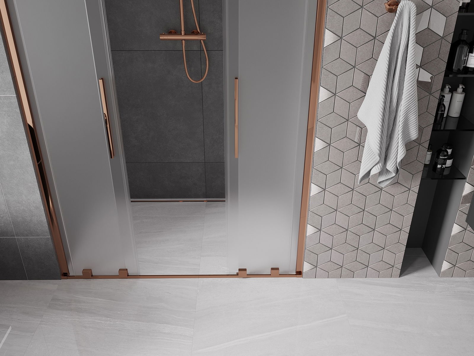 Mexen Velar Duo slankiojančios dušo durys 160 cm, matinės, rožinis auksas - 871-160-000-32-60