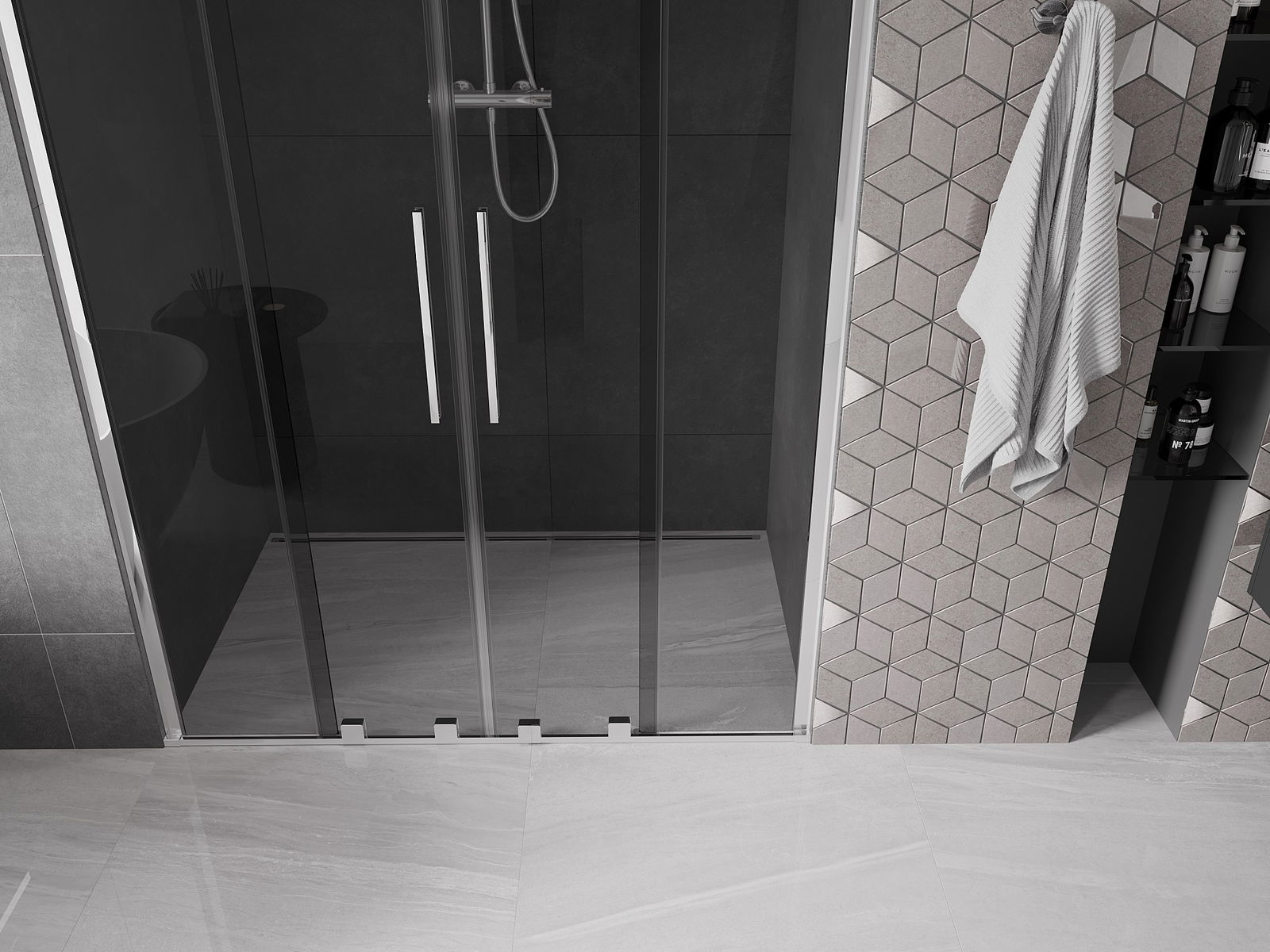Patogi ir patogi rankena pagaminta iš nerūdijančio plieno. Madinga forma ir prie profilių spalvos deranti apdaila suteikia visumai modernią ir stilingą išvaizdą, kuri pagerina bet kurio vonios kambario estetiką.
