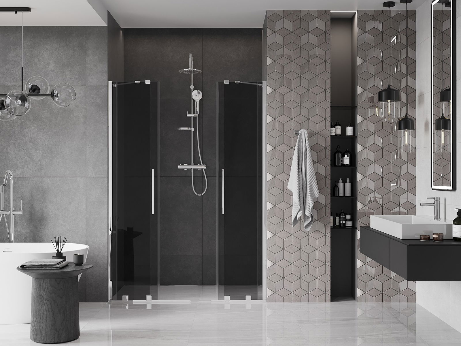 Mexen Velar Duo slankiojančios dušo durys 160 cm, grafitas, chromas - 871-160-000-42-01