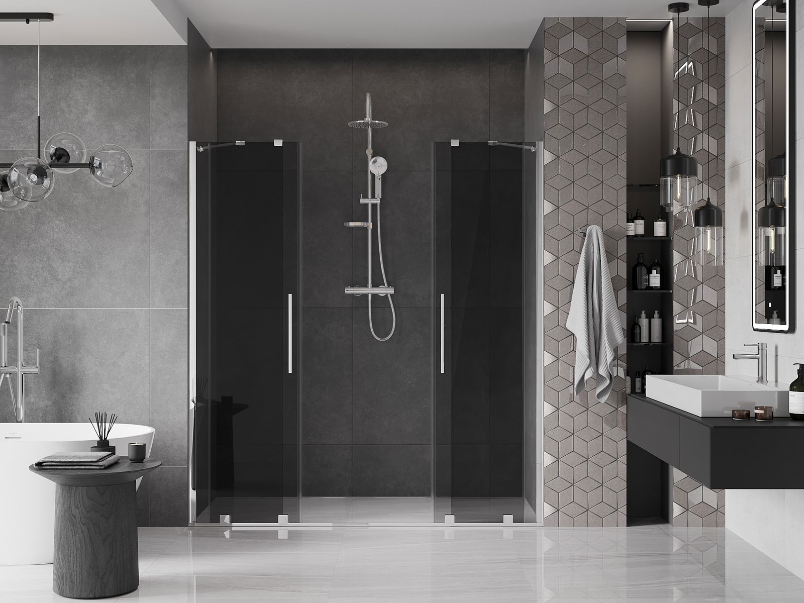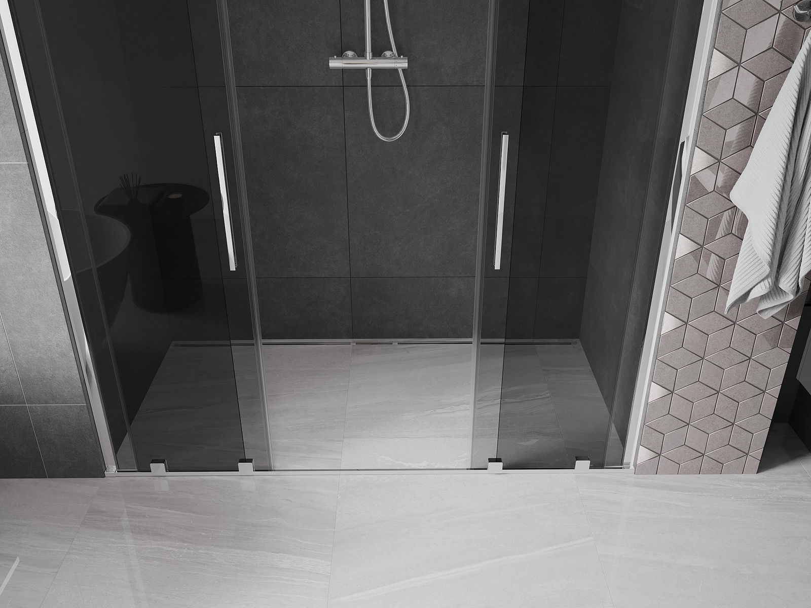 Mexen Velar Duo stumdomosios dušo durys 180 cm, grafitas, chromas - 871-180-000-42-01