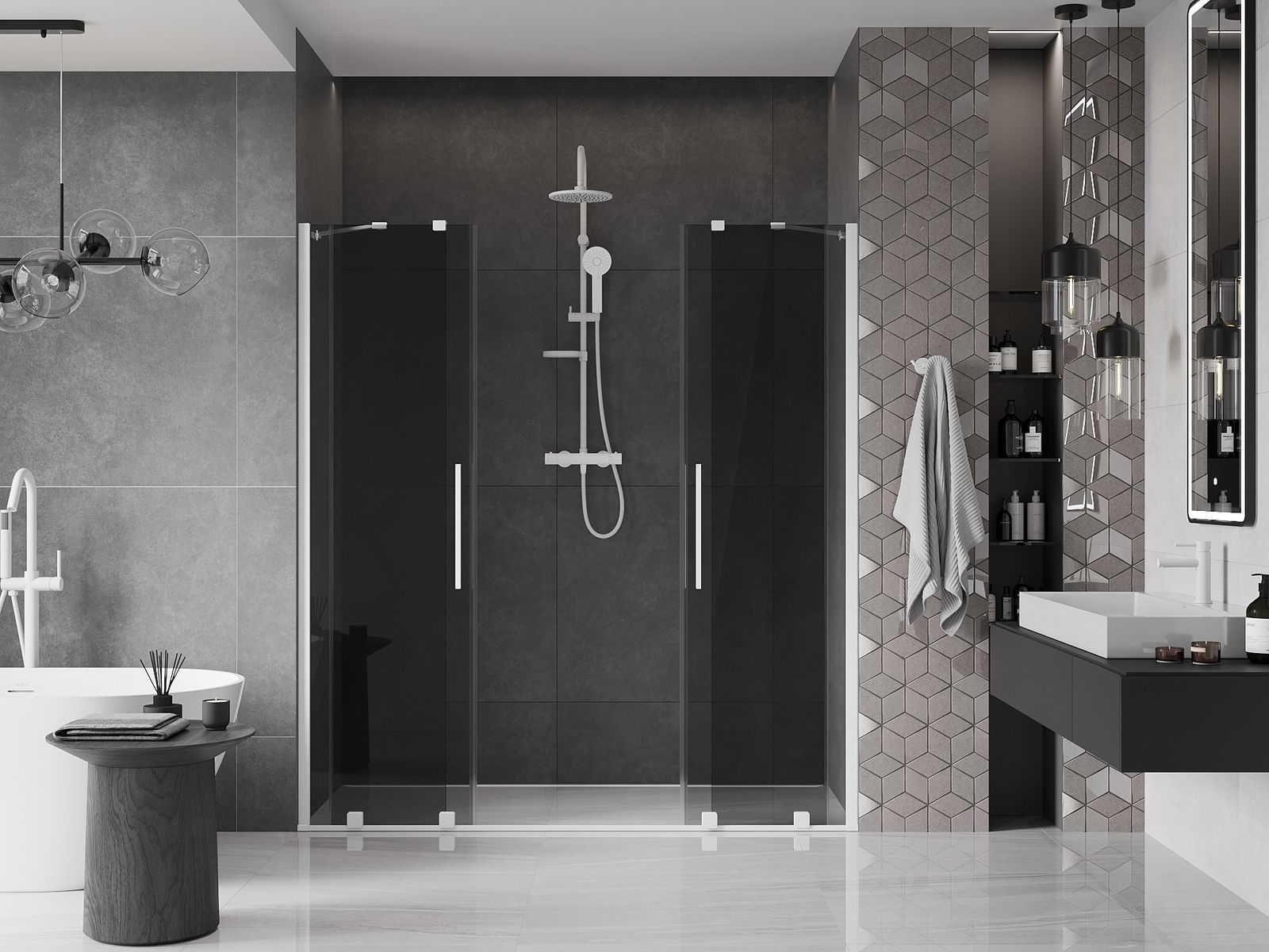 Mexen Velar Duo stumdomos dušo durys 170 cm, grafito, baltos - 871-170-000-42-20