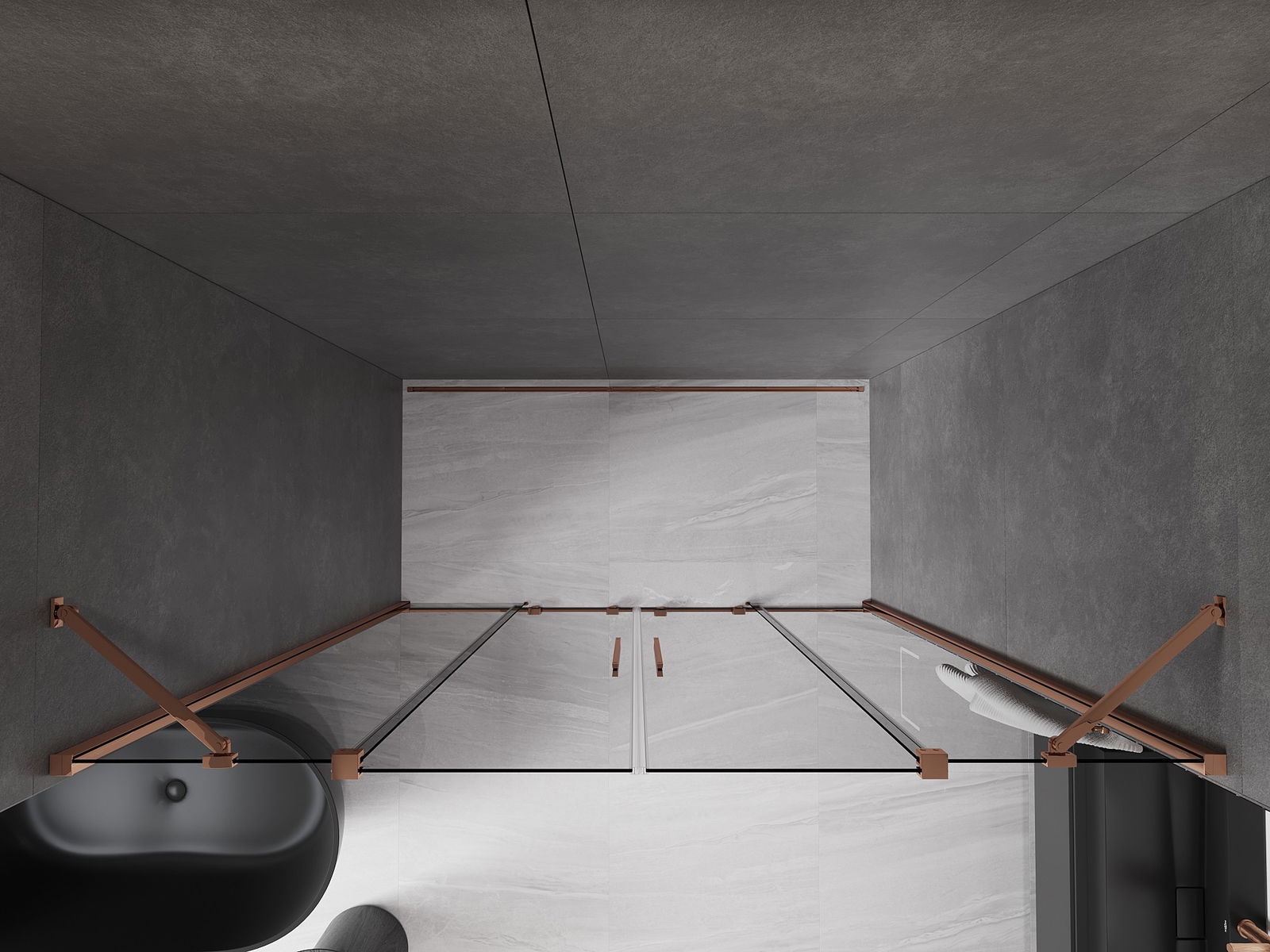 Mexen Velar Duo stumdomos dušo durys 170 cm, grafitas, rausvas auksas - 871-170-000-42-60