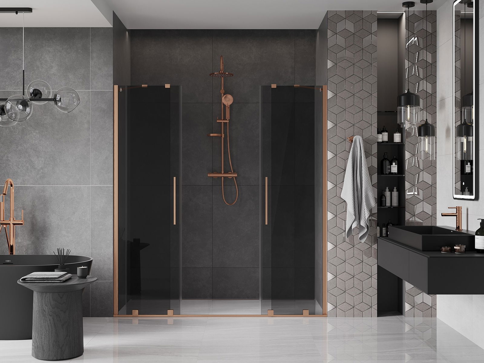 Mexen Velar Duo stumdomos dušo durys 200 cm, grafitas, šlifuota varis - 871-200-000-42-65