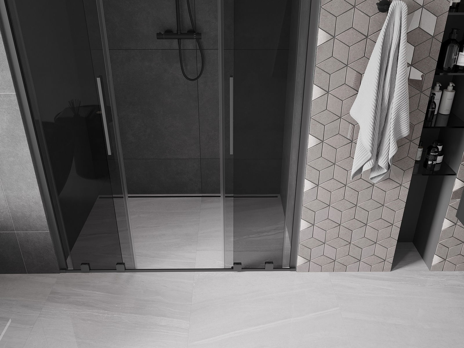 Mexen Velar Duo slankiojančios dušo durys 140 cm, grafitas, ginklų metalas - 871-140-000-42-95