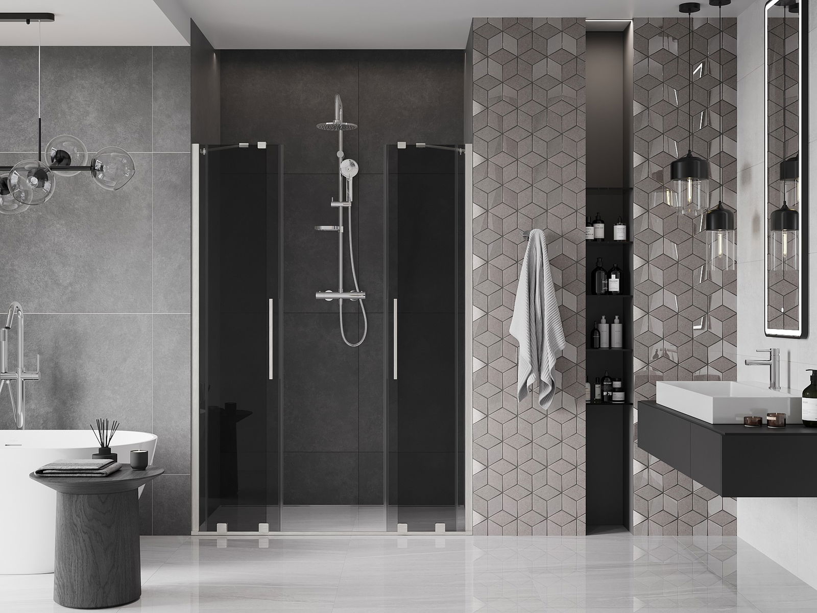 Mexen Velar Duo stumdomosios dušo durys 140 cm, grafitas, šlifuotas nikelis - 871-140-000-42-97