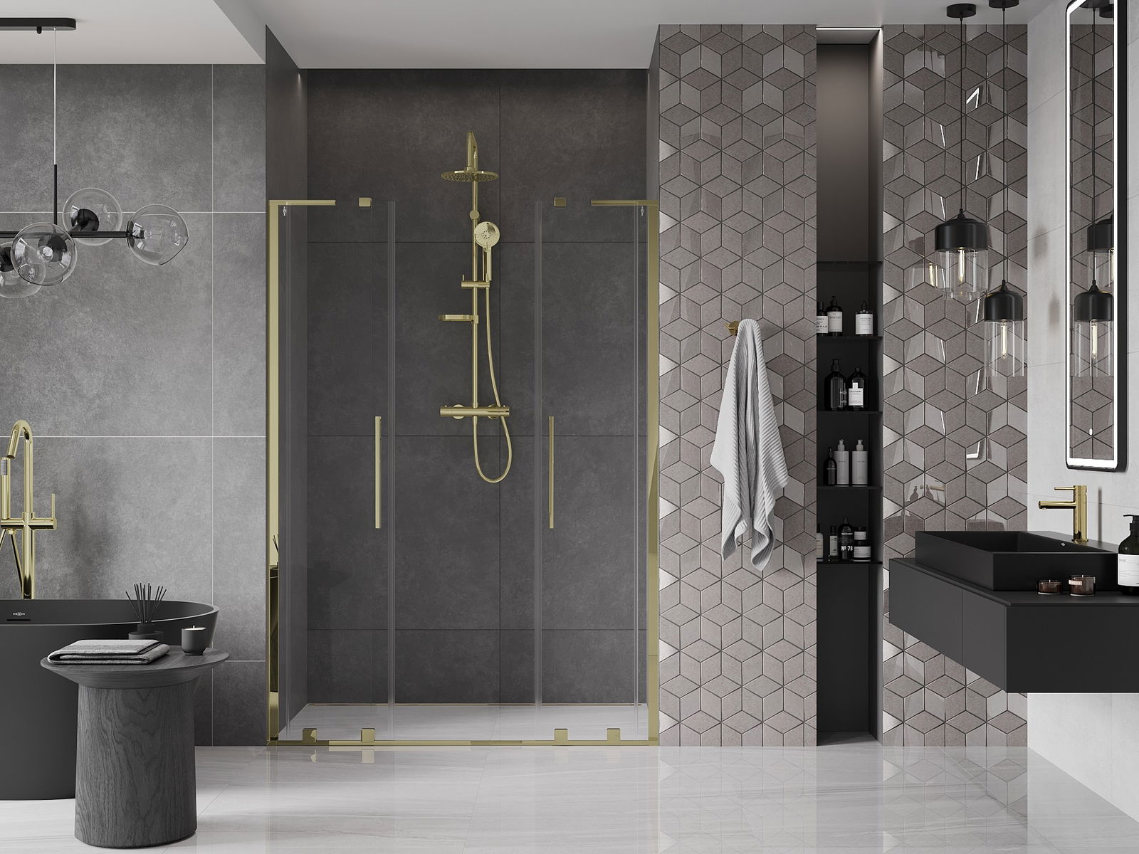 Mexen Velar L Duo stumdomos dušo durys 140 cm, skaidrios, auksinės - 871-140-003-02-50