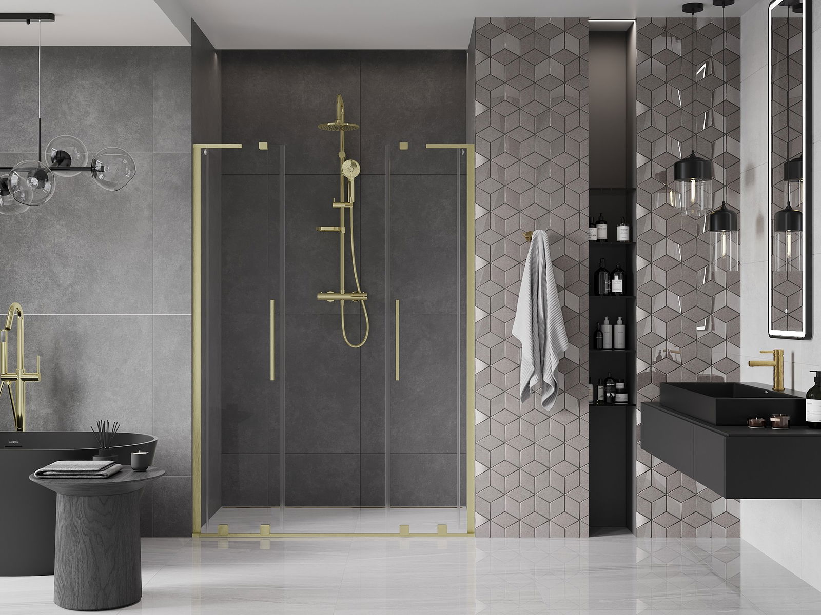 Mexen Velar L Duo stumdomos dušo durys 150 cm, skaidrus, auksinis šlifuotas - 871-150-003-02-55