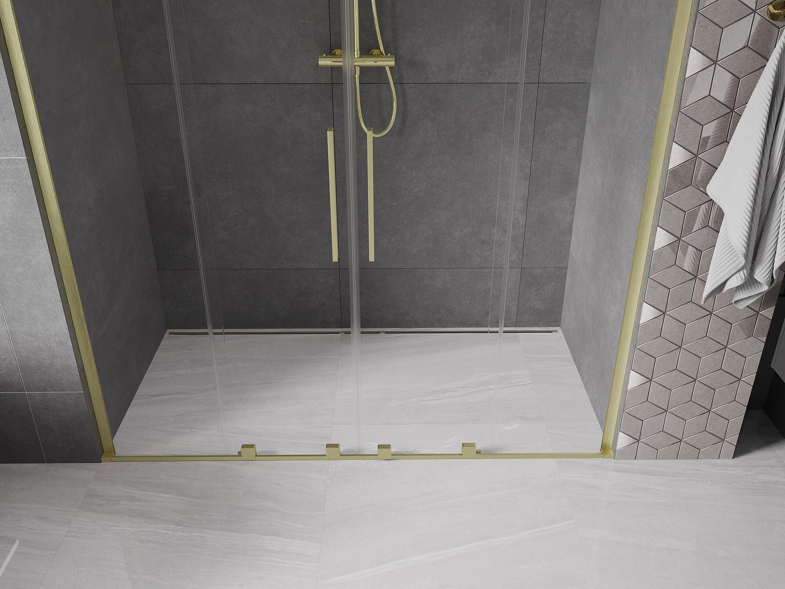 Produktą, atsižvelgiant į poreikius, galima sumontuoti tiek ant dušo padėklo, tiek tiesiogiai ant grindų. Universalus montavimo būdas leidžia pritaikyti produktą įvairių tipų vonios kambariams ir erdvės konfigūracijoms.