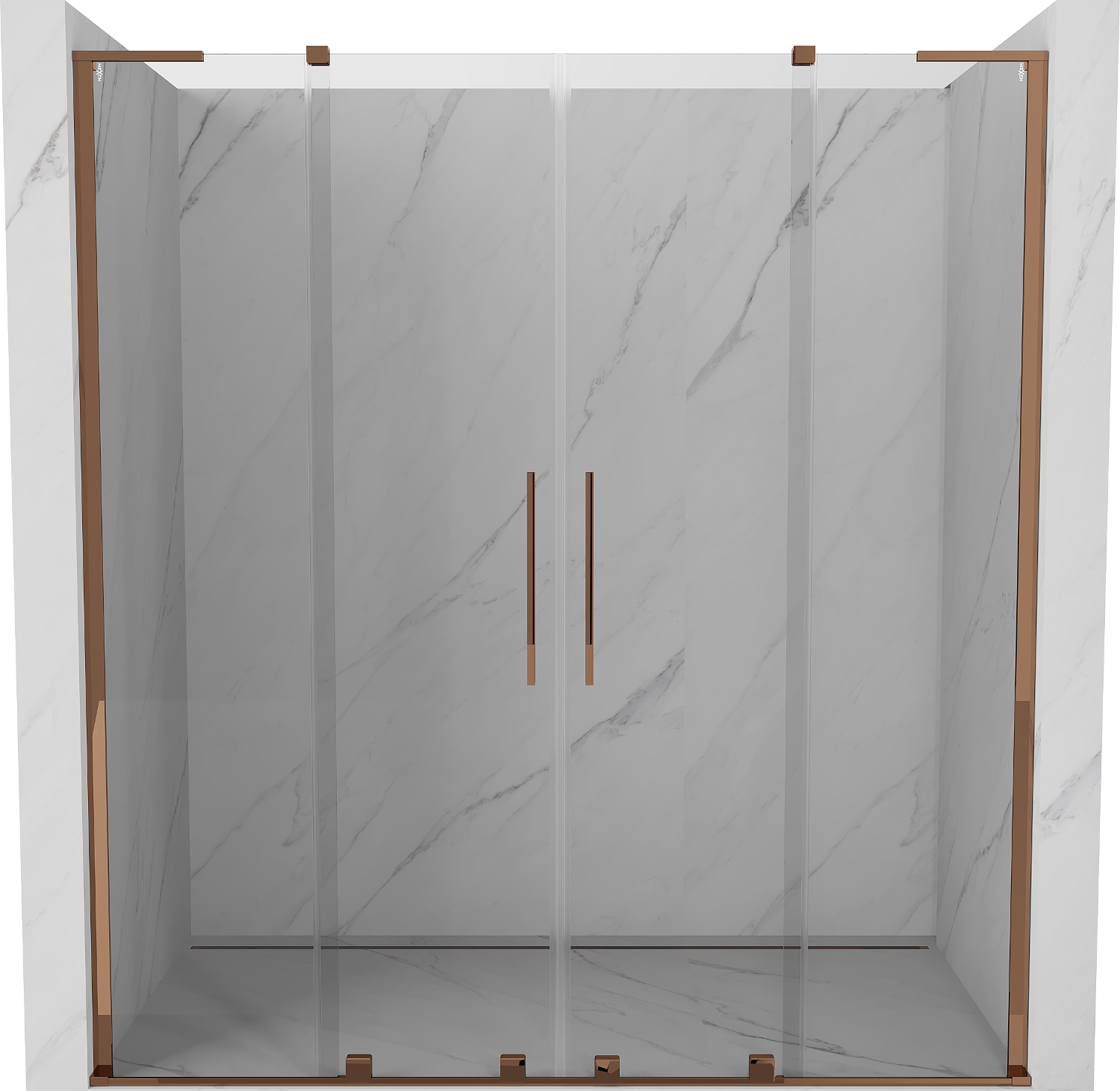 Mexen Velar L Duo stumdomosios dušo durys 200 cm, permatomos, rausvas auksas - 871-200-003-02-60