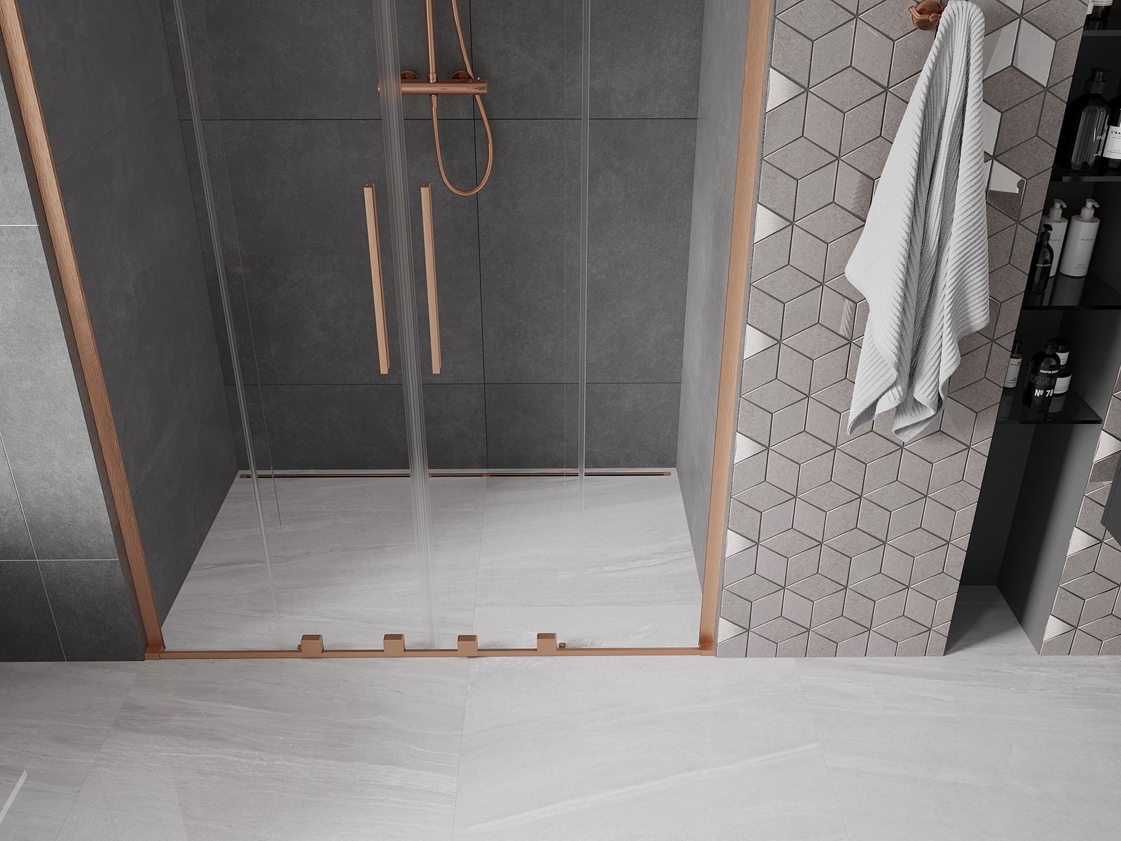 Mexen Velar L Duo stumdomos dušo durys 140 cm, skaidrios, šlifuota varinė - 871-140-003-02-65