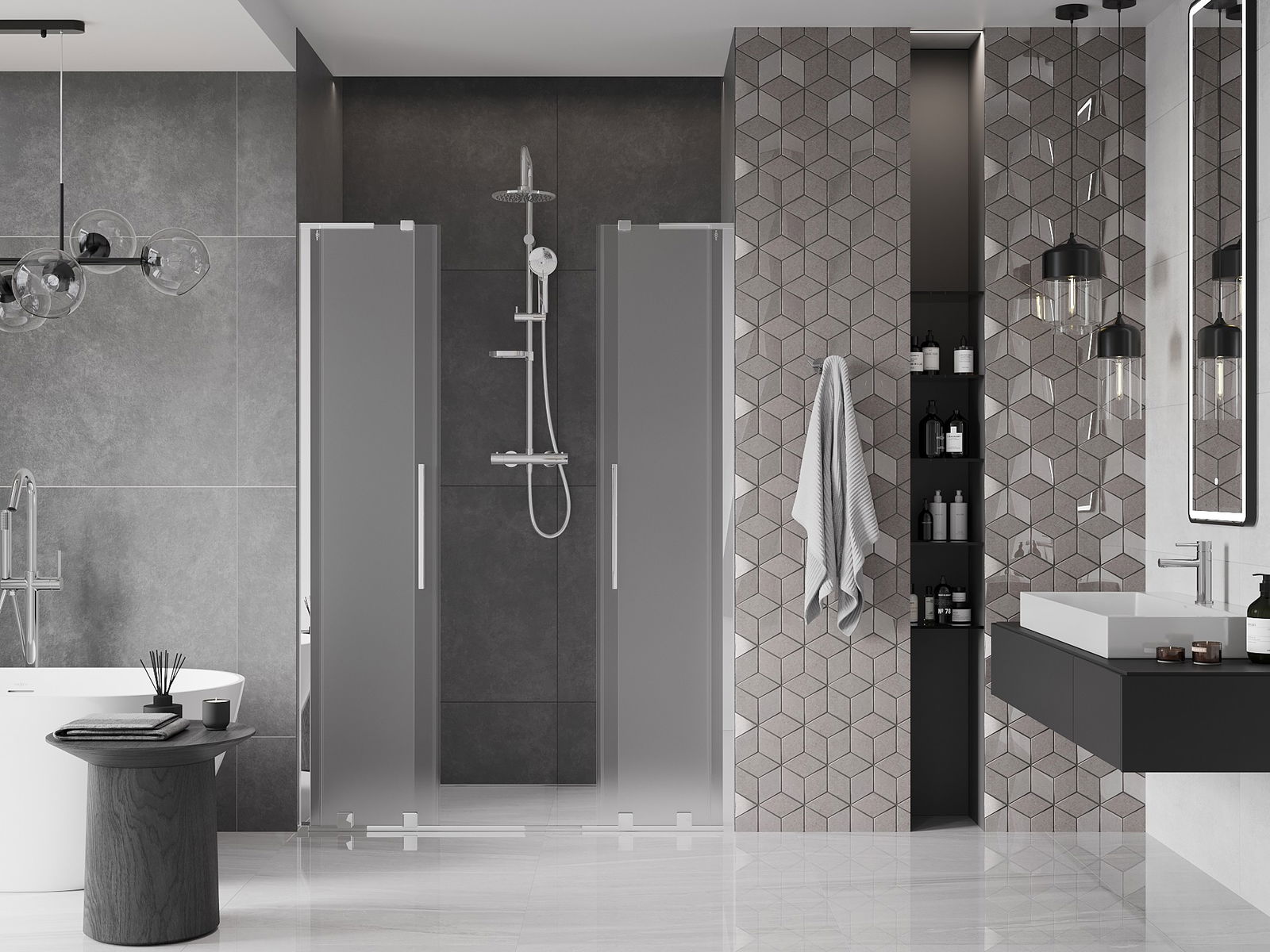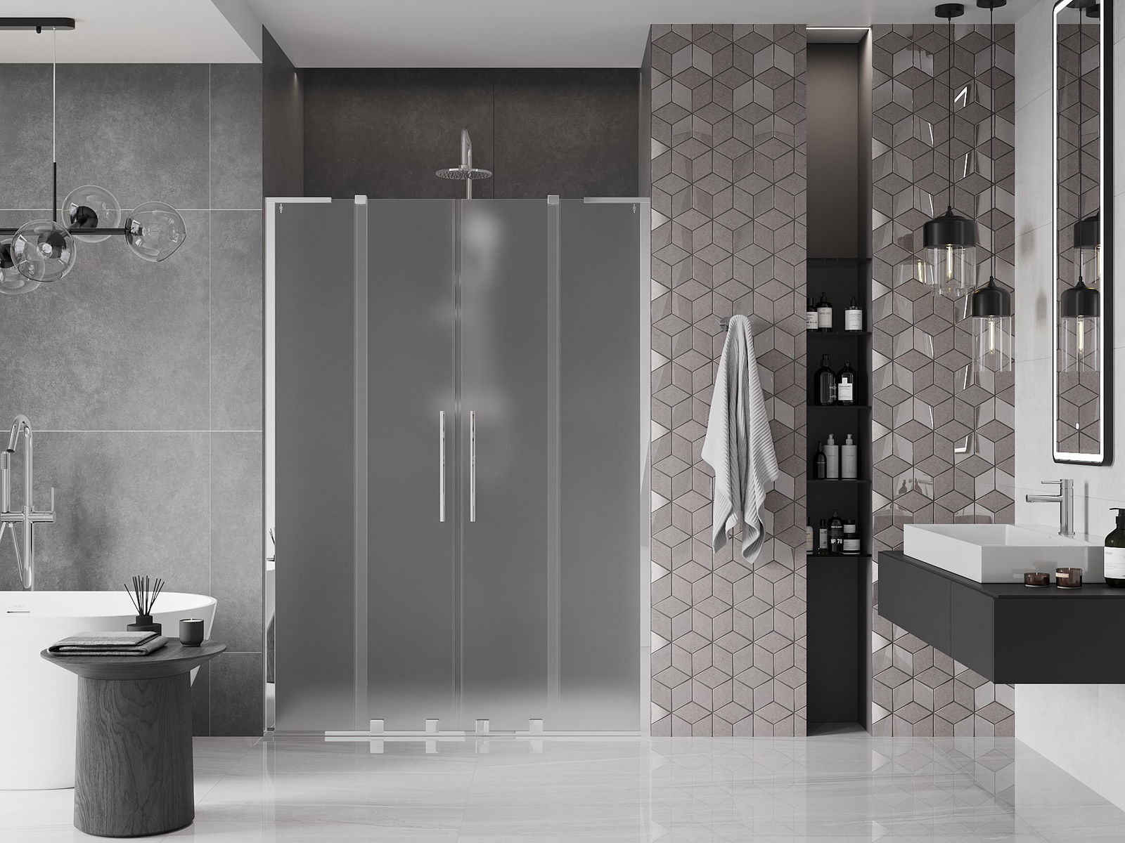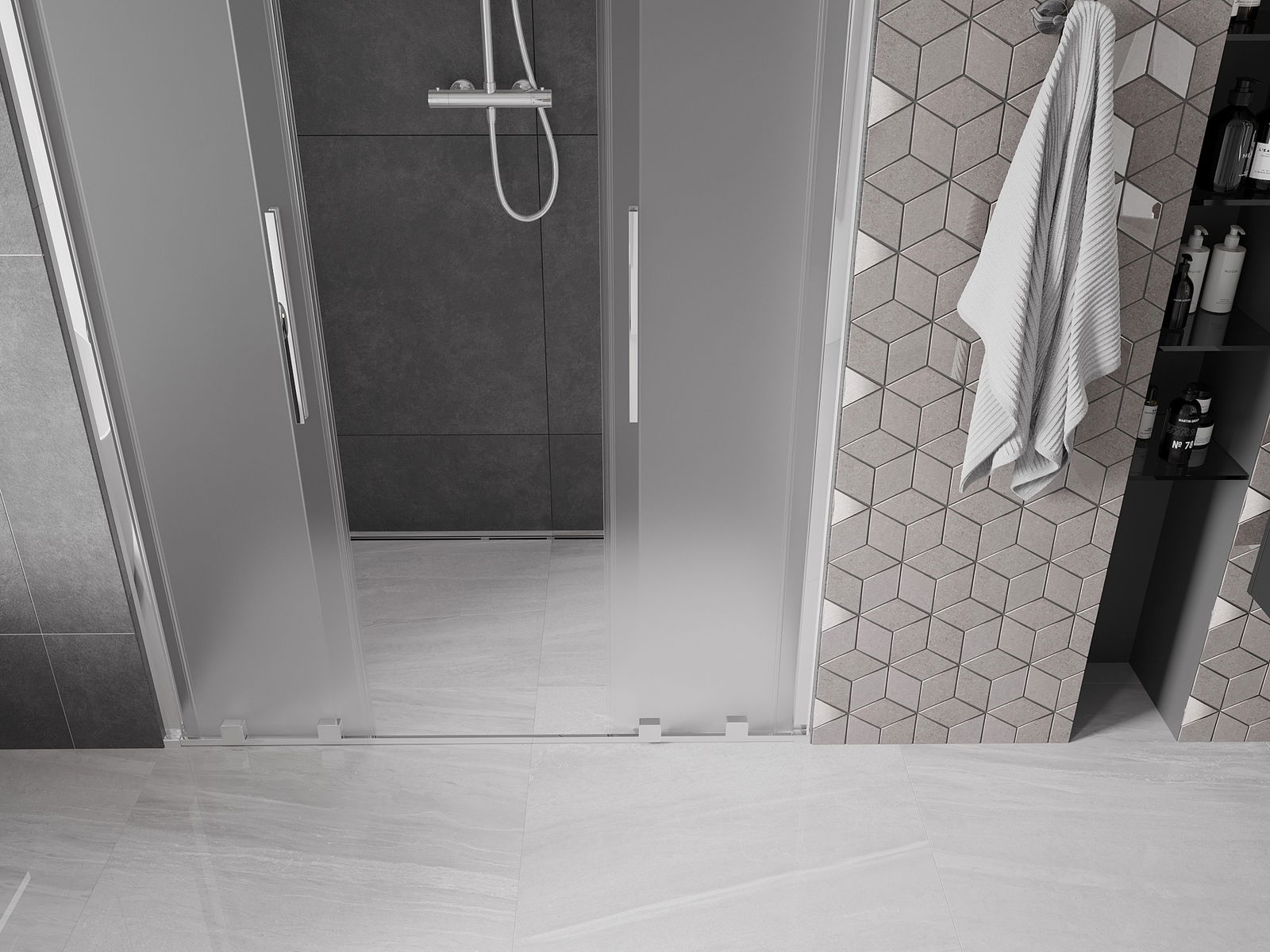 Produktą, atsižvelgiant į poreikius, galima sumontuoti tiek ant dušo padėklo, tiek tiesiogiai ant grindų. Universalus montavimo būdas leidžia pritaikyti produktą įvairių tipų vonios kambariams ir erdvės konfigūracijoms.