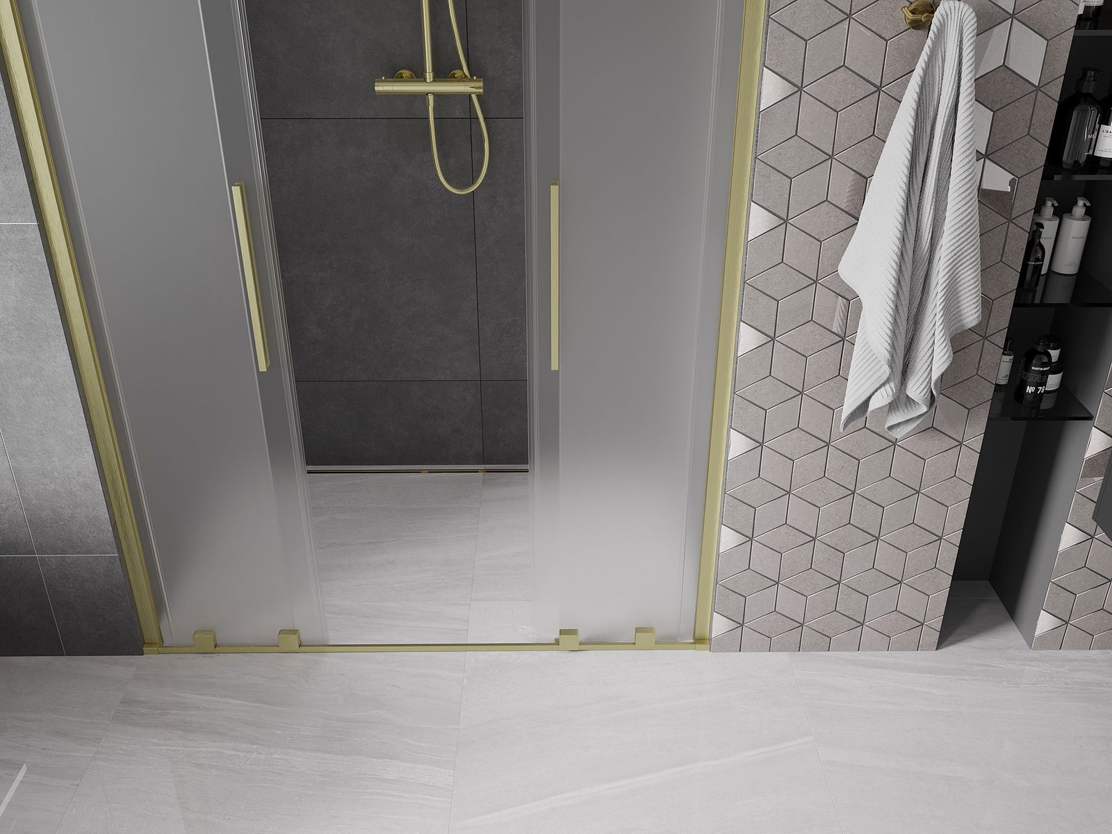 Mexen Velar L Duo stiklinės dušo durys 160 cm, matinės, aukso spalvos šlifuotos - 871-160-003-32-55