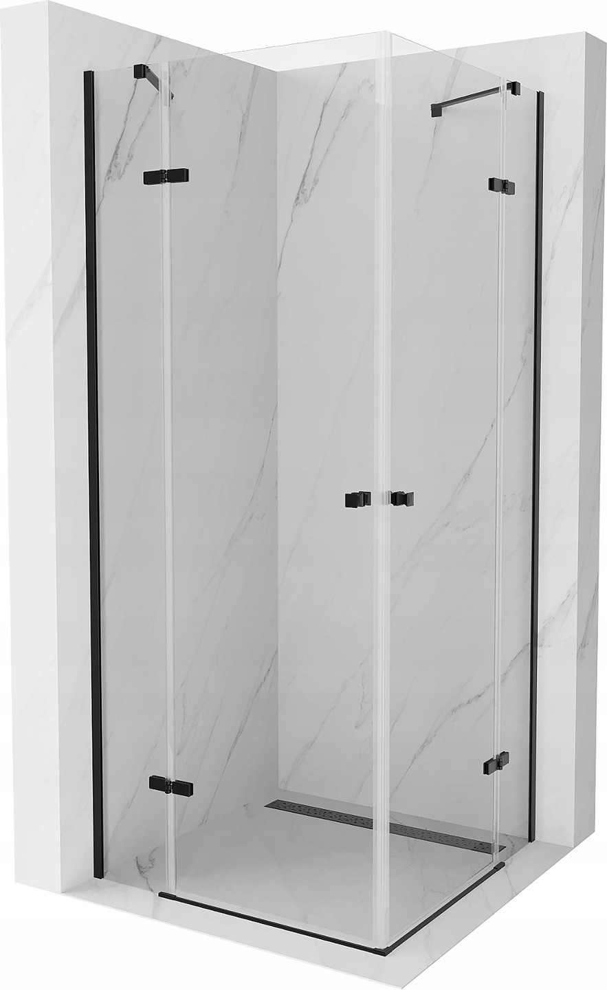 Mexen Roma Dviguba dušo kabina su atveriamomis durimis 90 x 90 cm, skaidri, juoda - 854-090-090-70-00-02