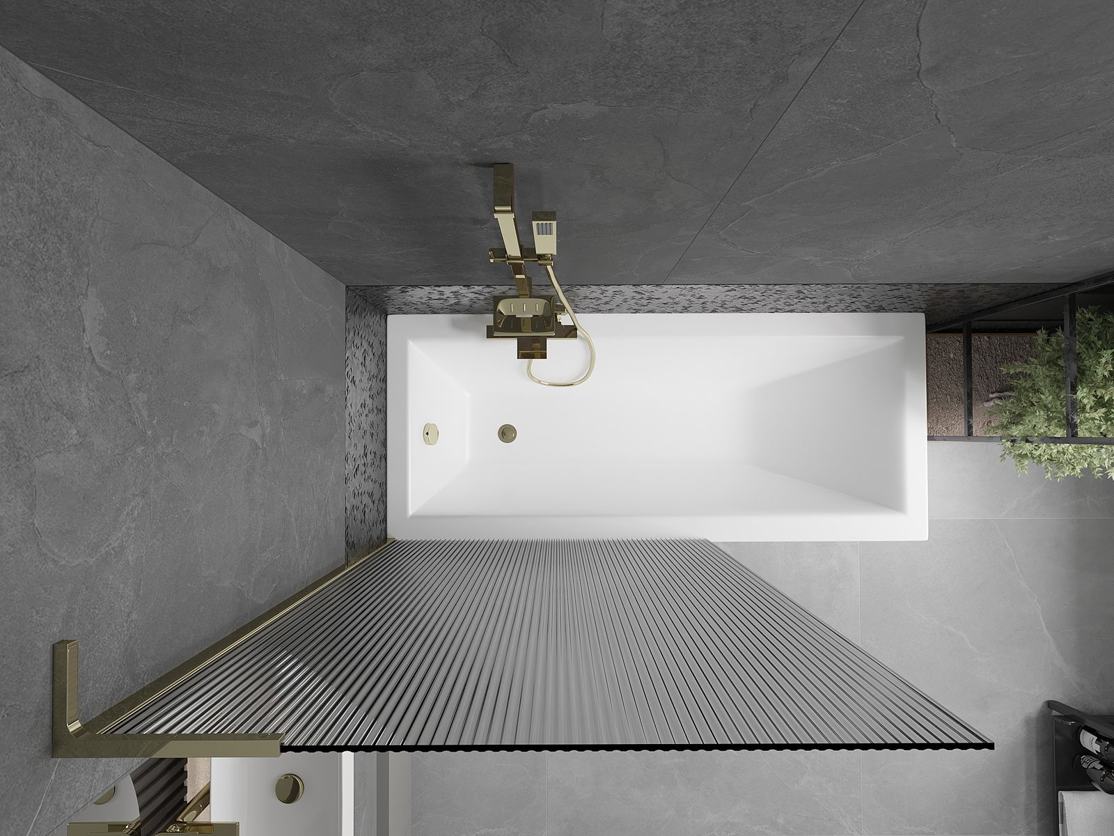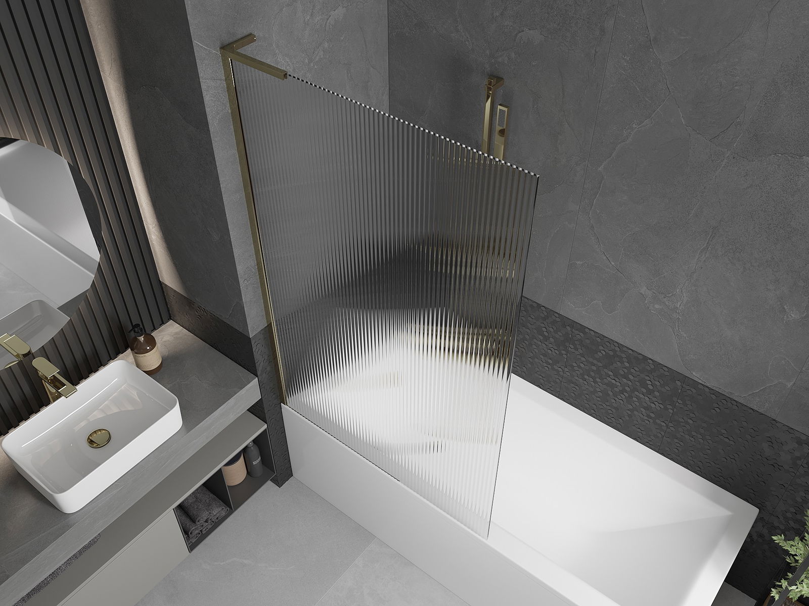 Mexen Next L vonios ekranas su 1 sparnu 100 x 150 cm, dryžiai, auksinis - 895-100-000-03-09-50