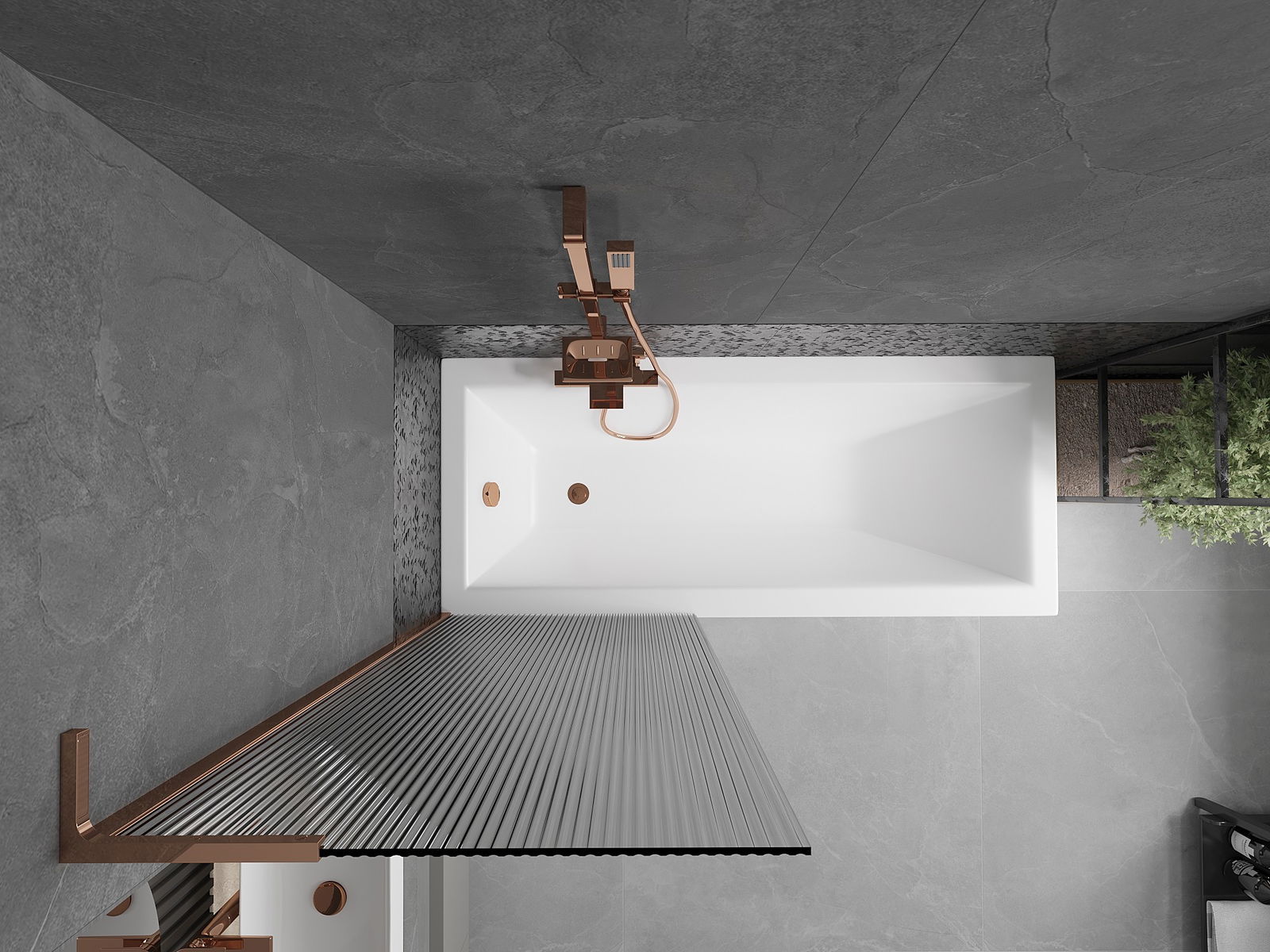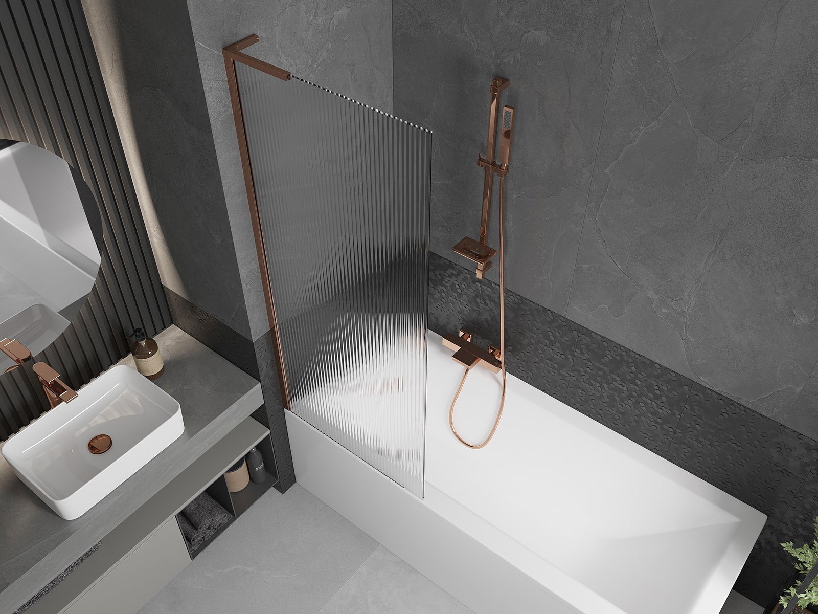 Mexen Next L vonios širma, 1-durų, 70 x 150 cm, dryžiai, rožinis auksas - 895-070-000-03-09-60