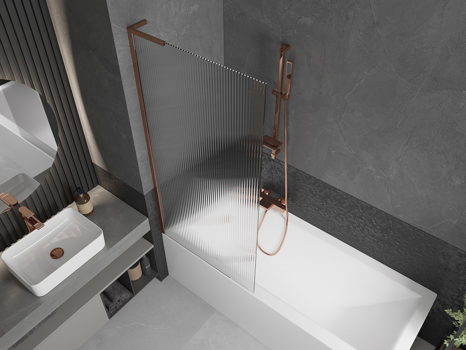 Efektyvi apsauga nuo vandens išsiliejimo maudymosi metu. Sienelė turi tarpines, kurios idealiai priglunda prie stiklo paviršiaus ir vonios krašto. Funkcionalus sprendimas, užtikrinantis saugumą ir lengvą švaros palaikymą.