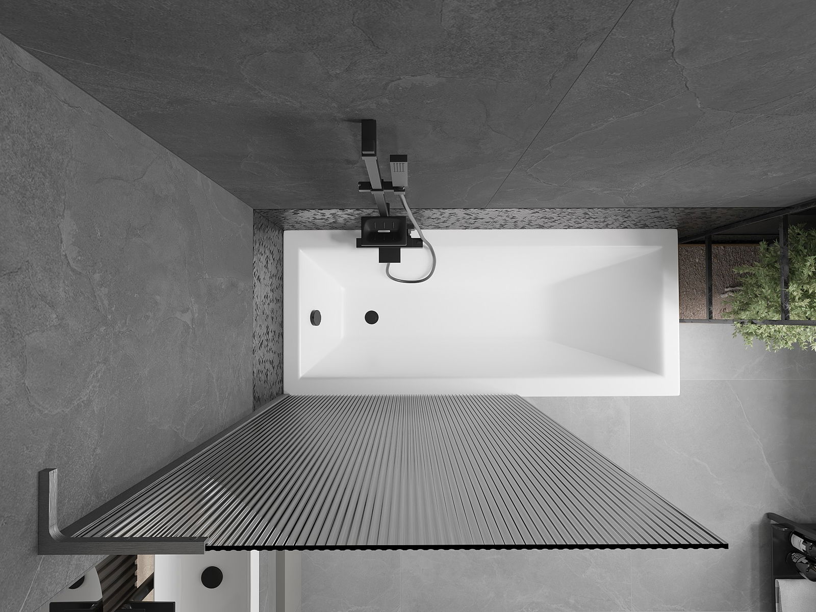Mexen Next L vonios pertvaras su 1 sparnu 100 x 150 cm, dryžuotas, šlifuotas gun gray - 895-100-000-03-09-66