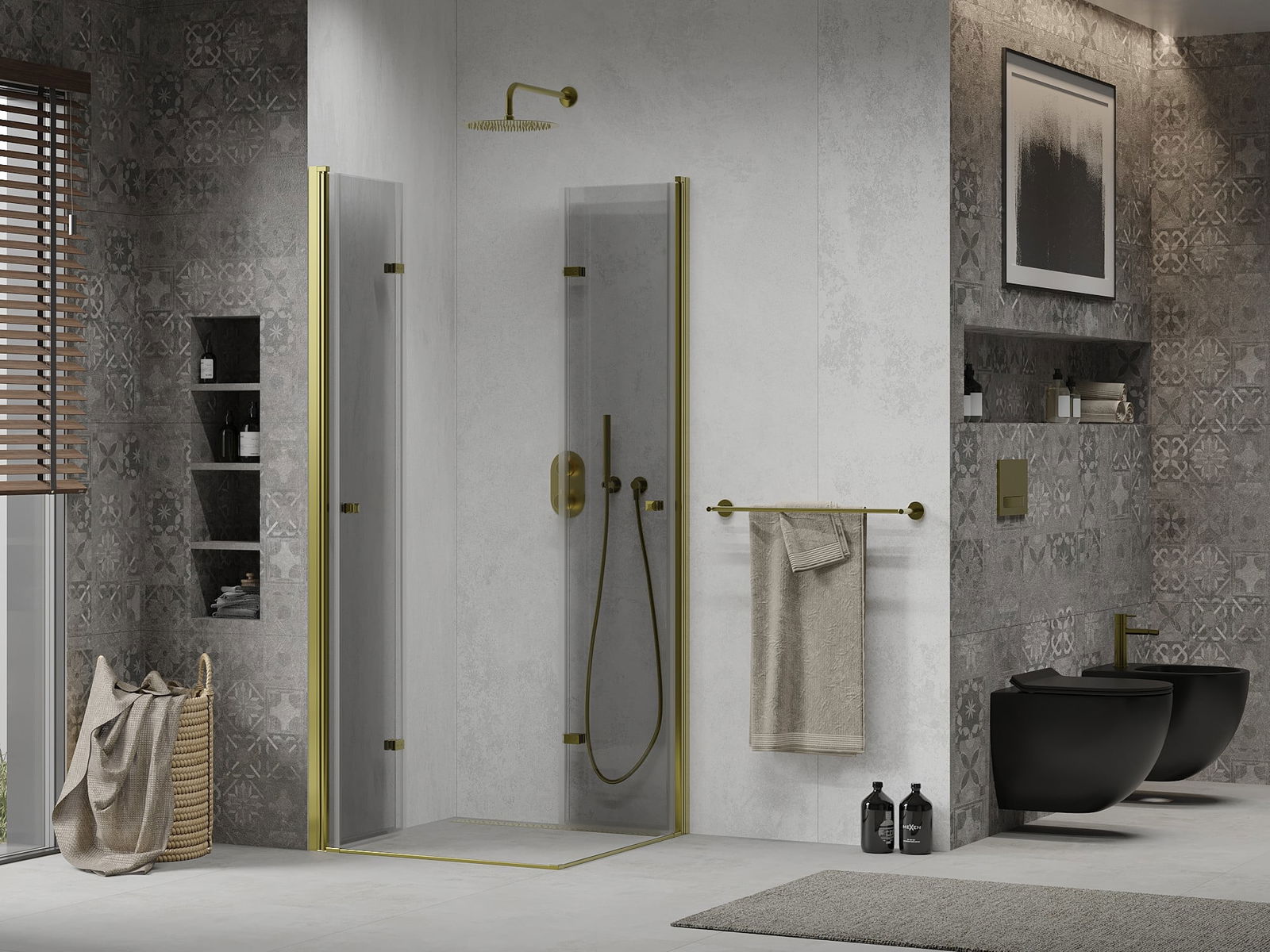 Mexen Lima Duo sulankstoma dušo kabina 100 x 100 cm, permatoma, auksinė - 856-100-100-50-00-02