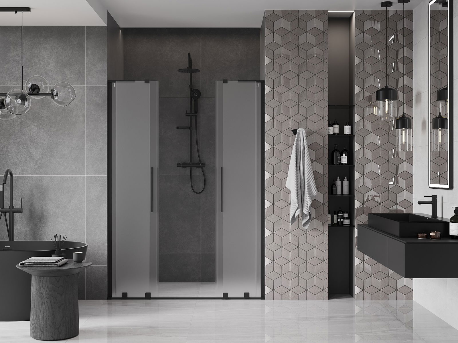 Mexen Velar L Duo stumdomos dušo durys 150 cm, šerkšnas, juodos - 871-150-003-32-70