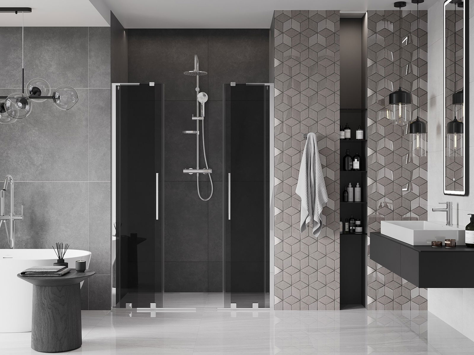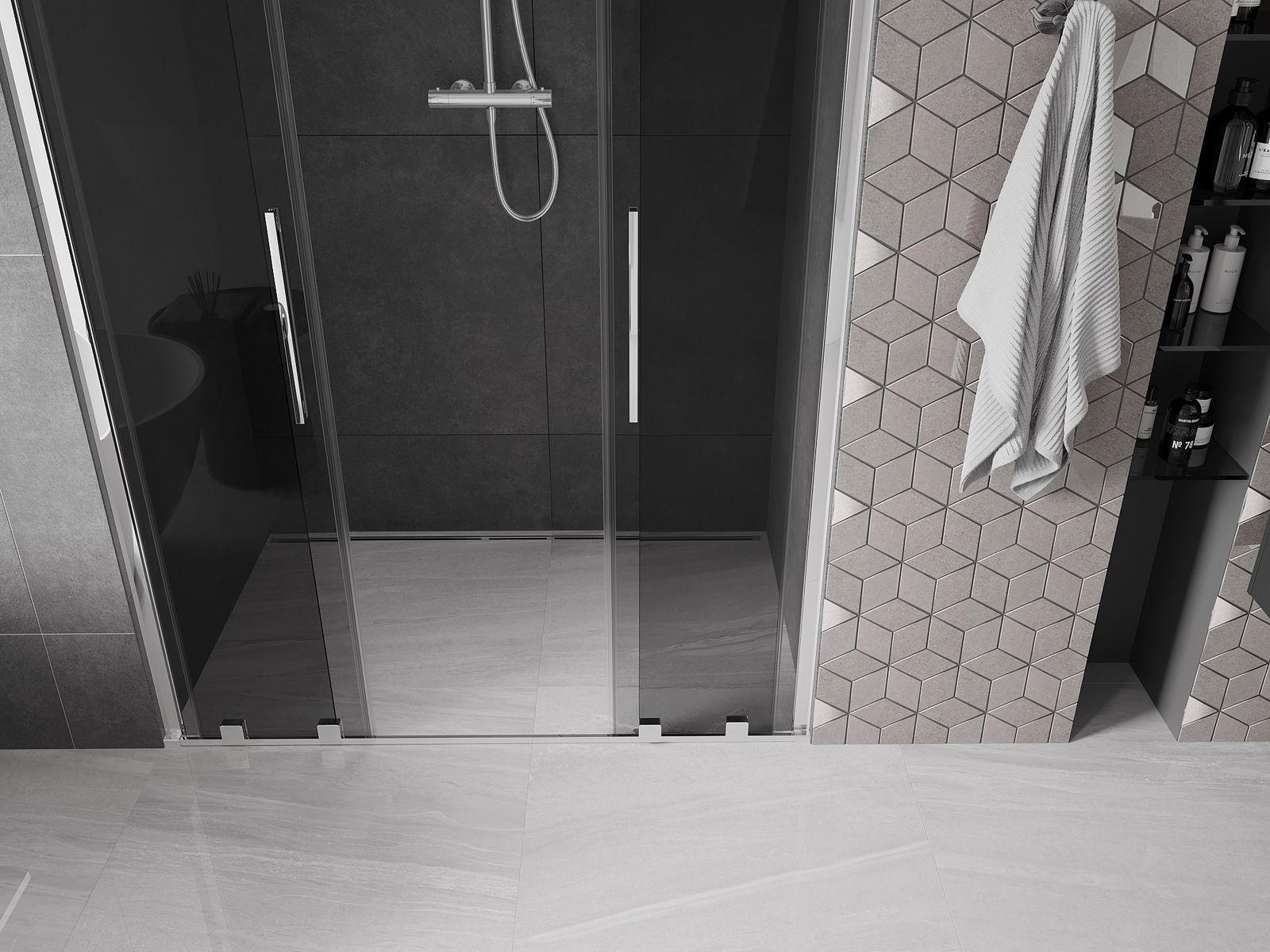 Produktą, atsižvelgiant į poreikius, galima sumontuoti tiek ant dušo padėklo, tiek tiesiogiai ant grindų. Universalus montavimo būdas leidžia pritaikyti produktą įvairių tipų vonios kambariams ir erdvės konfigūracijoms.