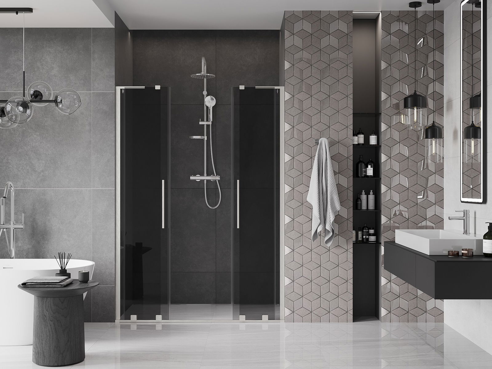 Mexen Velar L Duo slankiojančios dušo durys 160 cm, grafitas, šlifuotas nikelis - 871-160-003-42-97