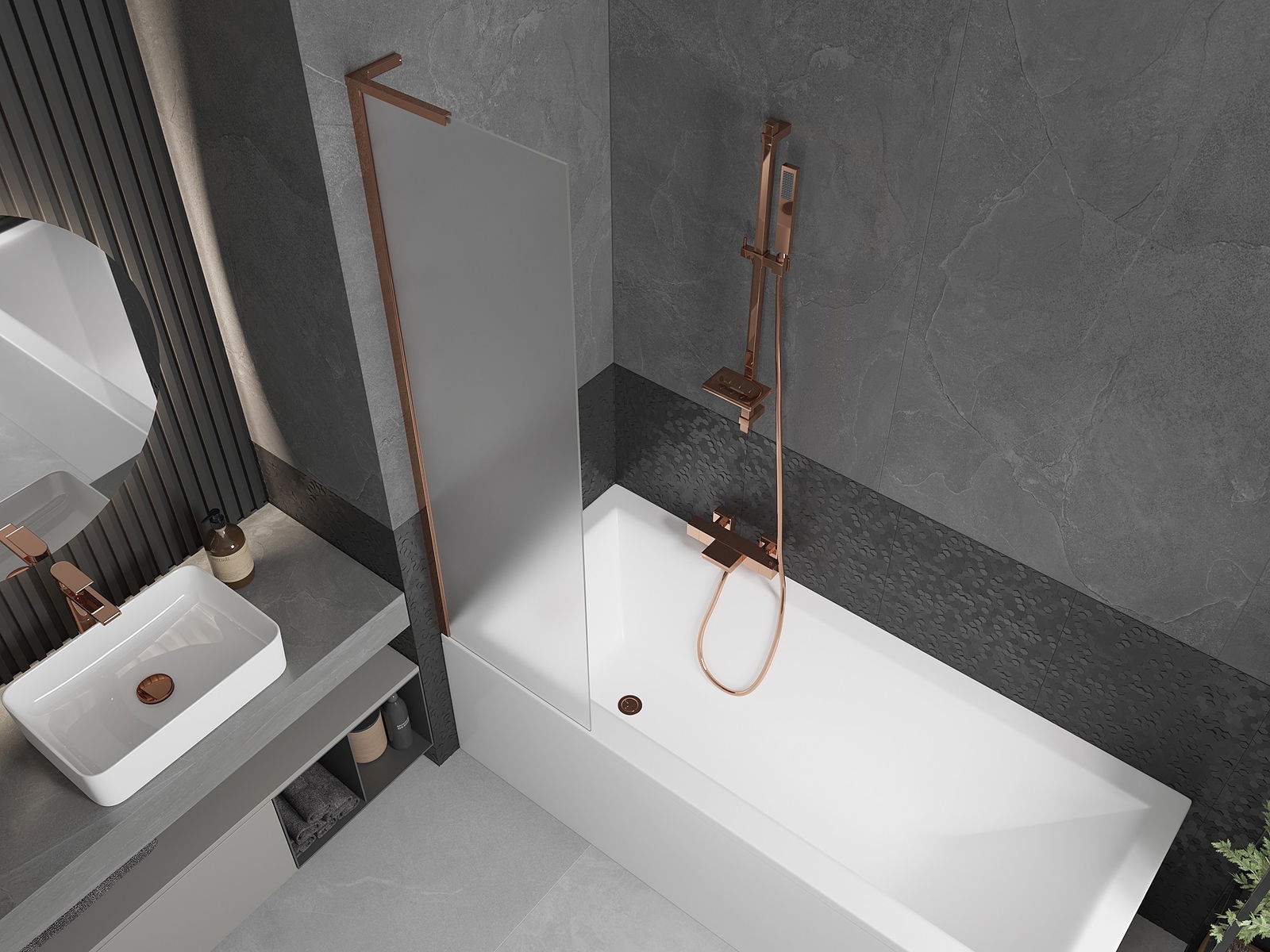 Mexen Next L vonios sienelė vieno sparno 50 x 150 cm, matinis, rožinis auksas - 895-050-000-03-30-60