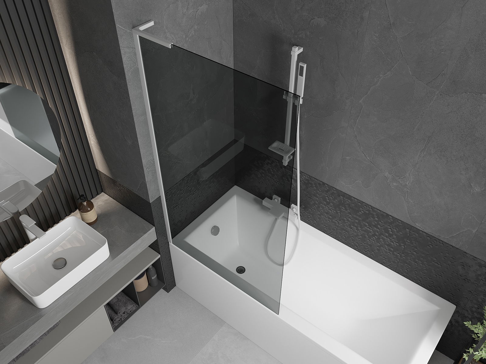 Mexen Next L vonios širma, vienguba 90 x 150 cm, grafitas, balta - 895-090-000-03-40-20