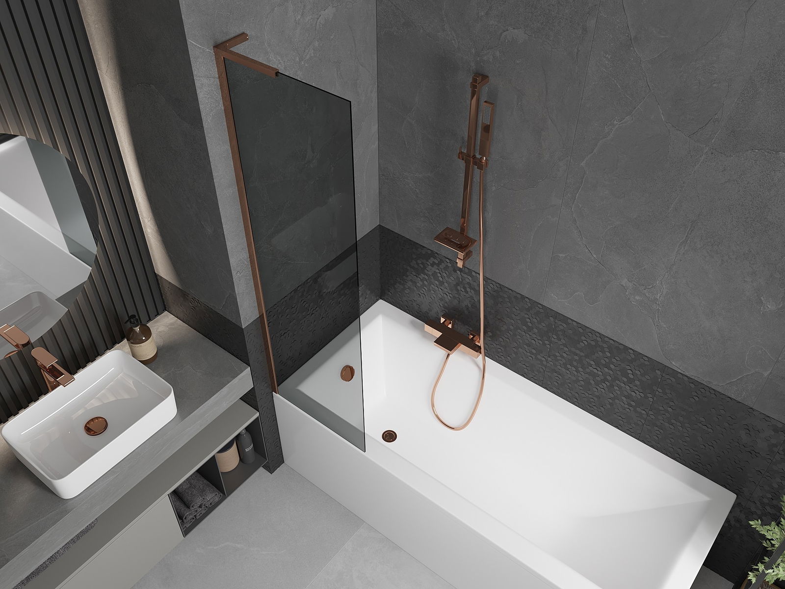 Mexen Next L vonios ekranas vienasparnis 50 x 150 cm, grafitas, rožinis auksas - 895-050-000-03-40-60