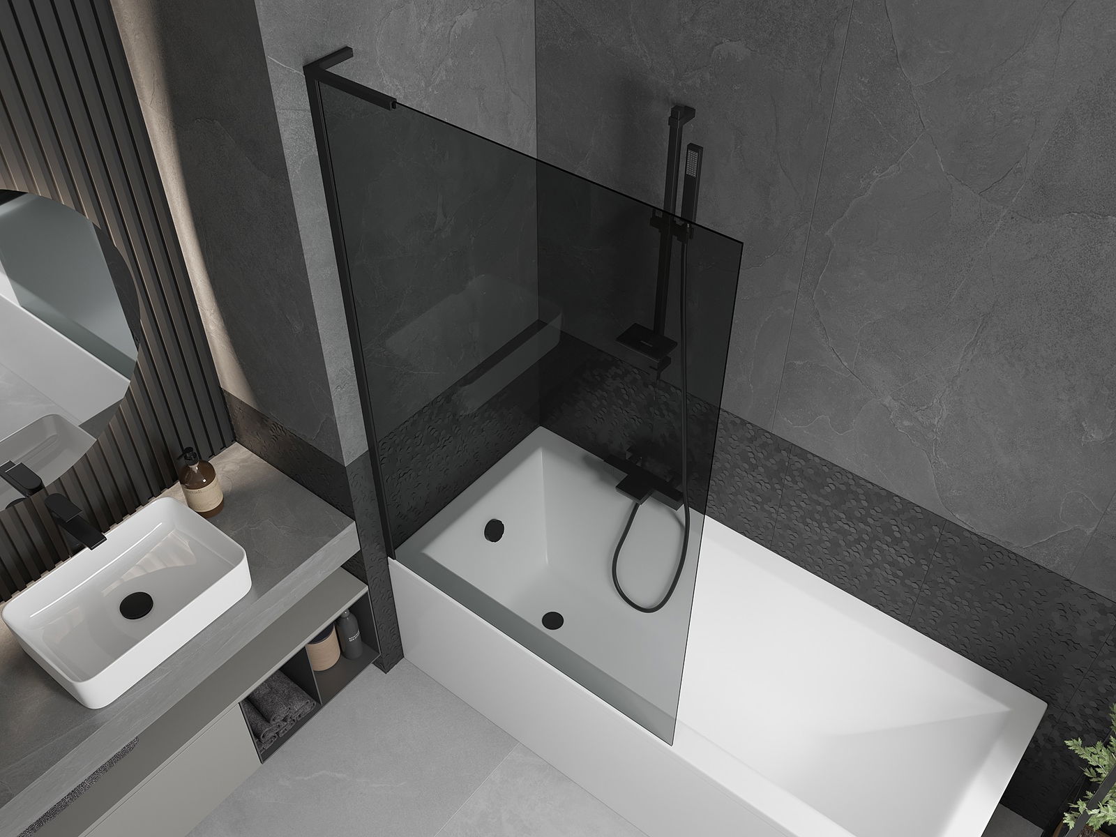 Efektyvi apsauga nuo vandens išsiliejimo maudymosi metu. Sienelė turi tarpines, kurios idealiai priglunda prie stiklo paviršiaus ir vonios krašto. Funkcionalus sprendimas, užtikrinantis saugumą ir lengvą švaros palaikymą.