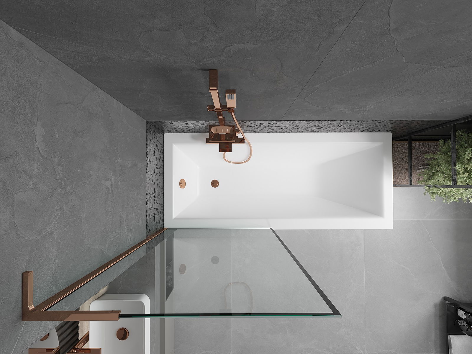 Mexen Next L vonios ekrano 1 durys 80 x 150 cm, juodas rėmelis, rožinis auksas - 895-080-000-03-70-60