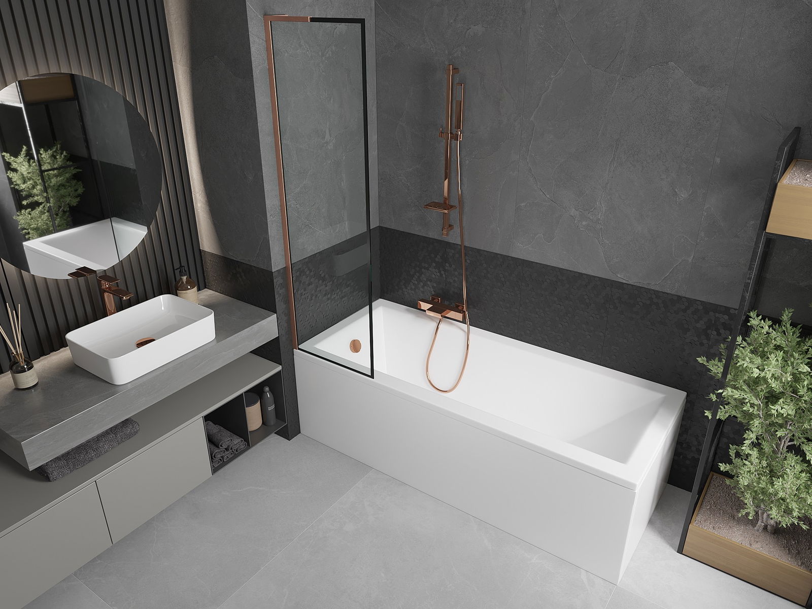 Mexen Next L viengubas vonios ekranas 50 x 150 cm, juodas rėmelis, šlifuotas varis - 895-050-000-03-70-65